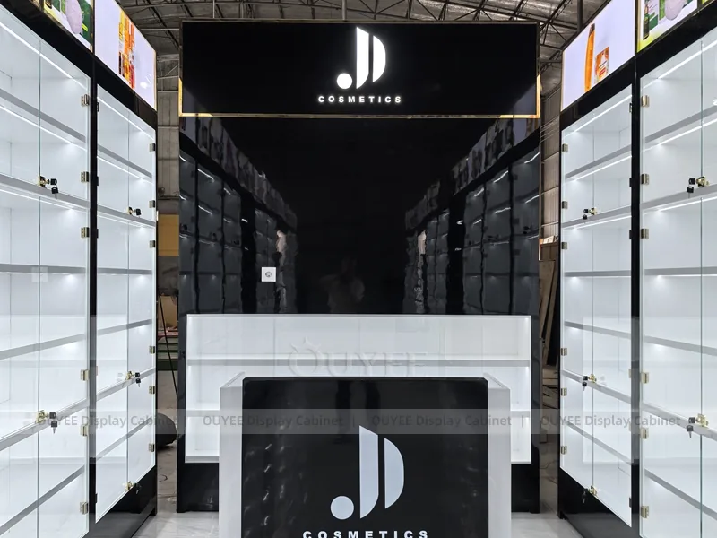 This configuration works well for cosmetic shops, makeup boutiques, beauty chain stores, department-store counters, and branded retail interiors. It is suitable for cosmetic store openings, beauty shop renovations, department-store counter upgrades, pop-up retail projects, and custom display fixture programs that need consistent production quality.