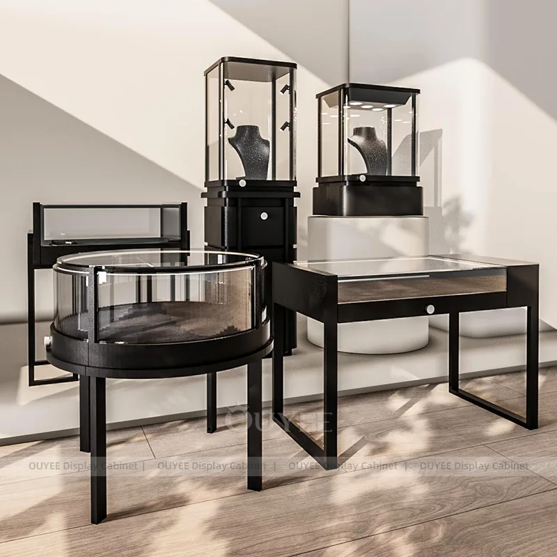 This configuration works well for fine jewelry boutiques, luxury mall stores, watch retailers, and premium accessories showrooms. It is suitable for projects that need elegant display security, premium lighting atmosphere, and a coordinated jewelry presentation language across the full boutique.
