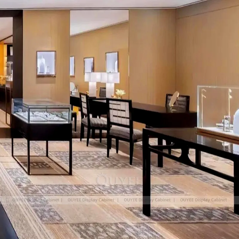 This configuration works well for fine jewelry boutiques, luxury mall stores, watch retailers, and premium accessories showrooms. It is suitable for projects that need elegant display security, premium lighting atmosphere, and a coordinated jewelry presentation language across the full boutique.
