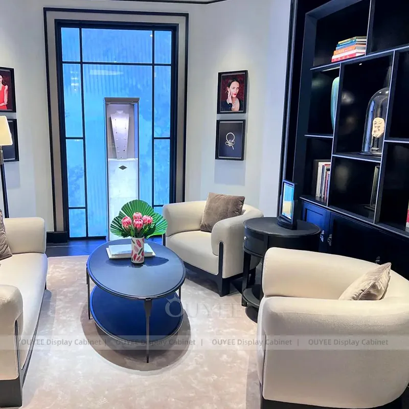 This configuration works well for fine jewelry boutiques, luxury mall stores, watch retailers, and premium accessories showrooms. It is suitable for projects that need elegant display security, premium lighting atmosphere, and a coordinated jewelry presentation language across the full boutique.