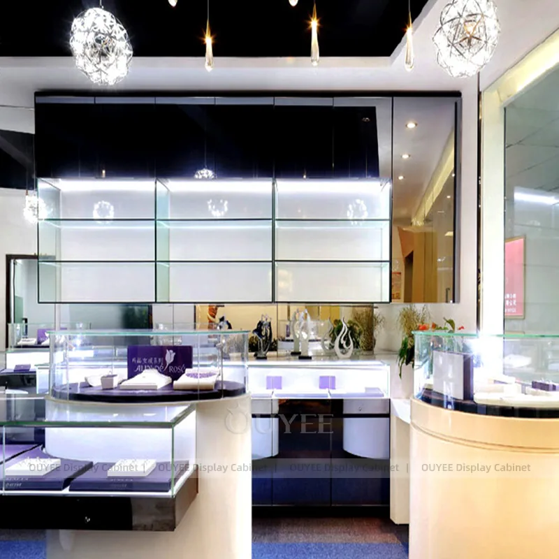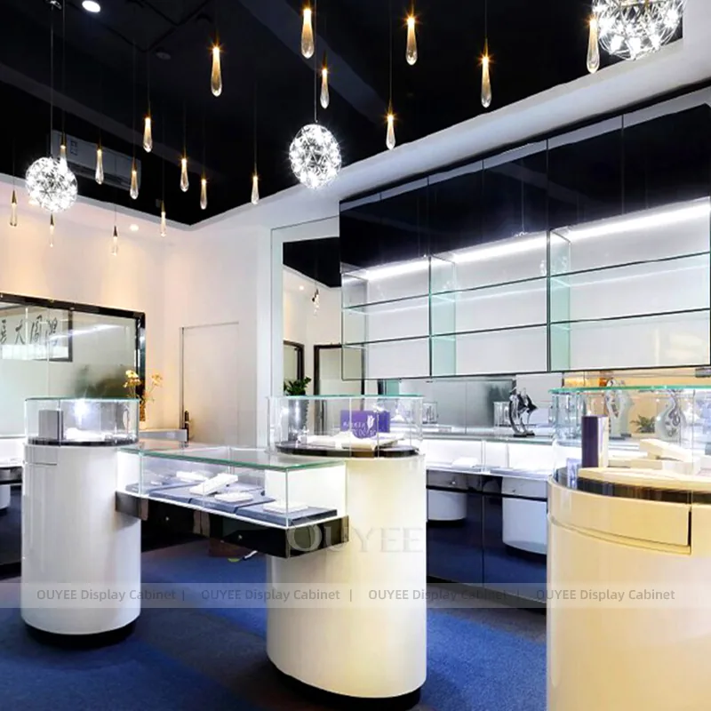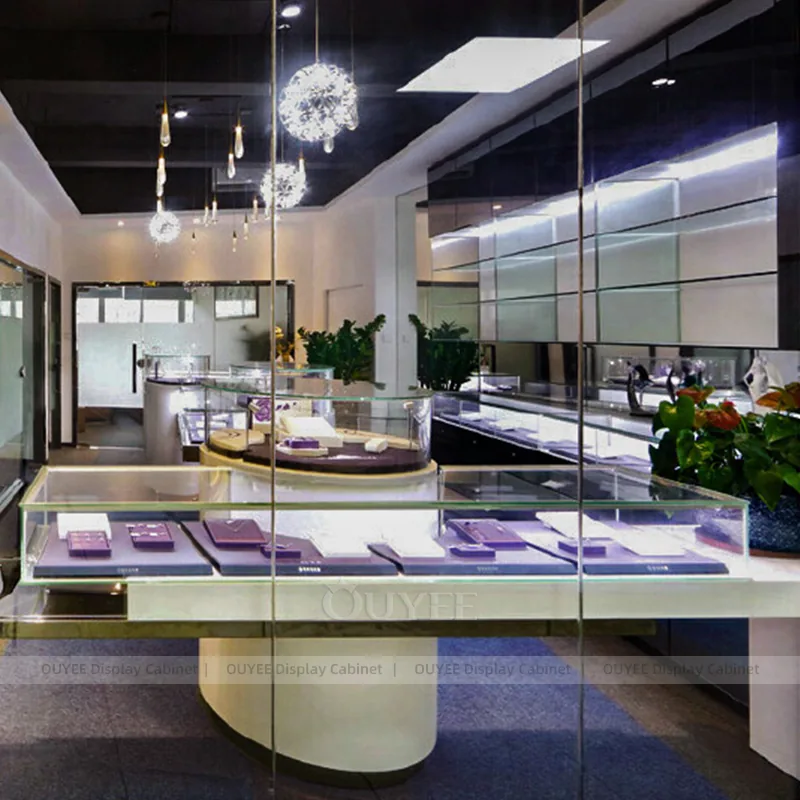 OUYEE can produce this model with tempered glass, fluted wood cladding, and custom jewelry fixture joinery. We can adjust dimensions, counter heights, storage details, showcase proportions, branding areas, and fluted wood textures so the project fits the store concept, SKU mix, and floor plan. Related inspiration is available across jewelry shop displays, display cabinet and our store fixture manufacturing service.