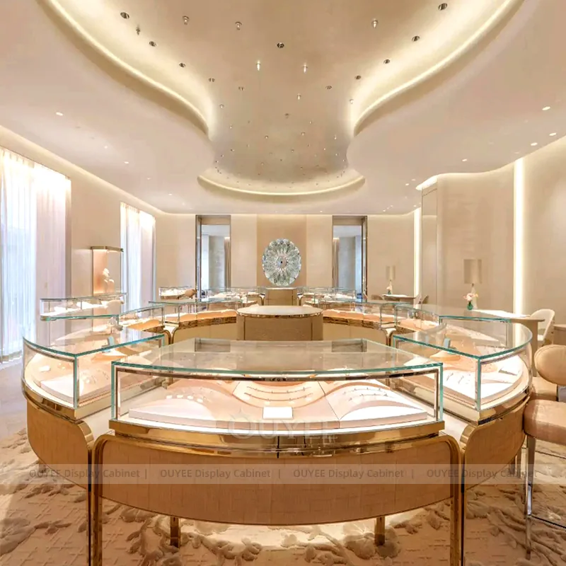 Style: Custom jewelry display system with secure showcases, luxury finishes, and boutique-ready layout planning