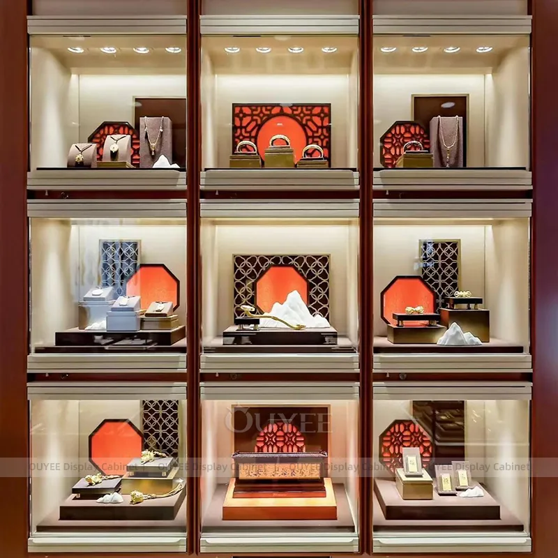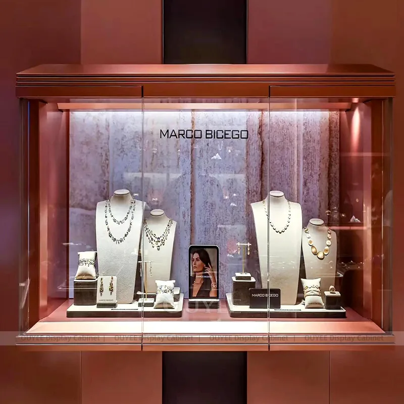 This configuration works well for fine jewelry boutiques, luxury mall stores, watch retailers, and premium accessories showrooms. It is suitable for projects that need elegant display security, premium lighting atmosphere, and a coordinated jewelry presentation language across the full boutique.