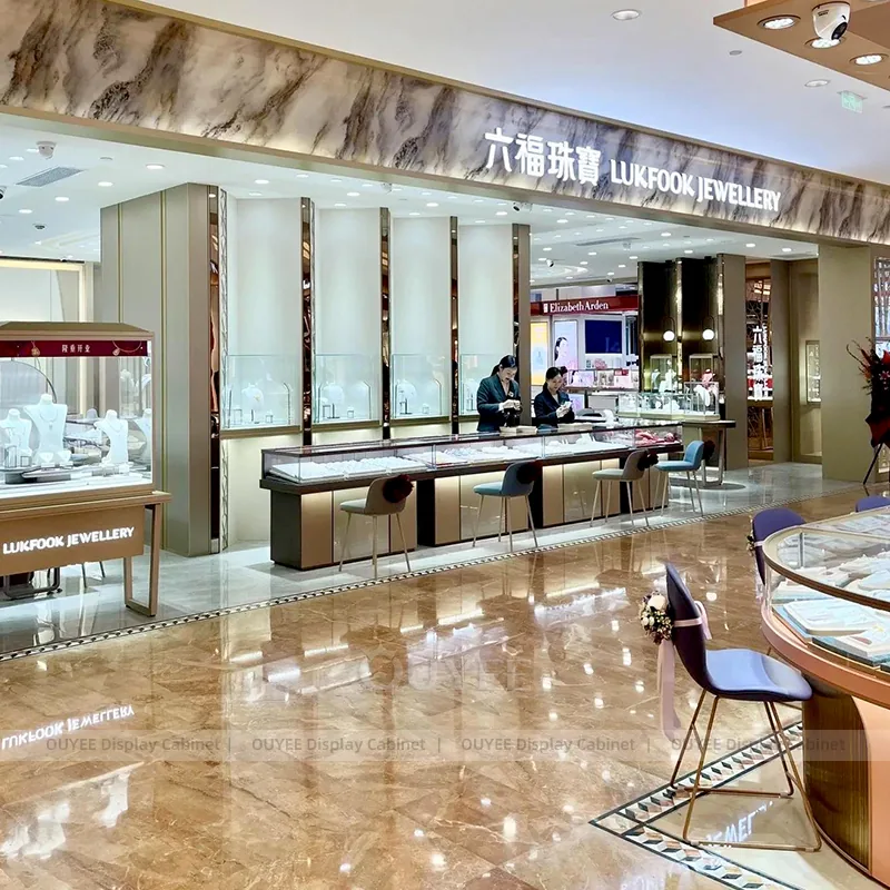 Style: Custom jewelry display system with secure showcases, luxury finishes, and boutique-ready layout planning