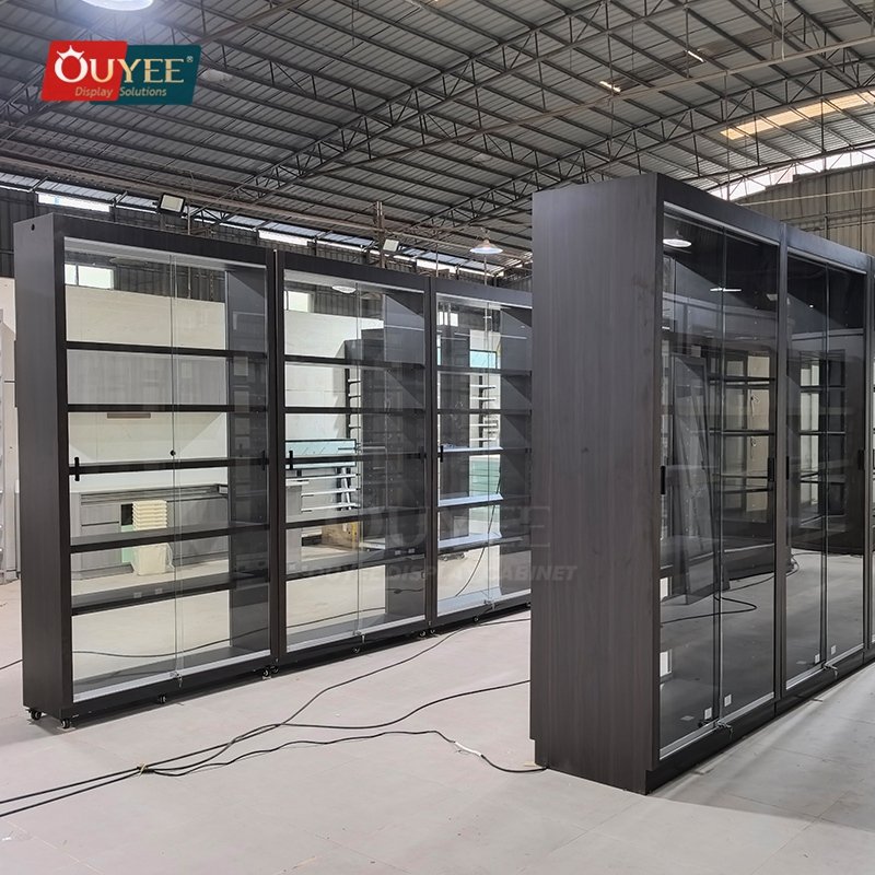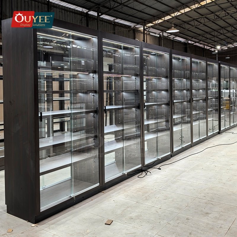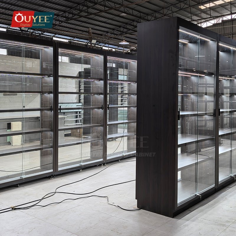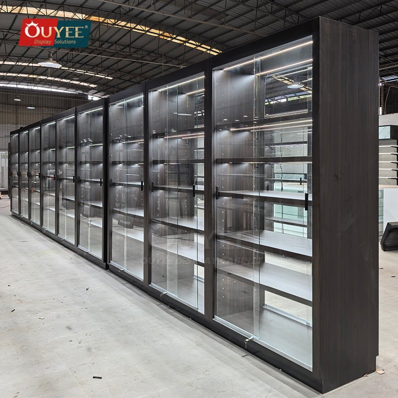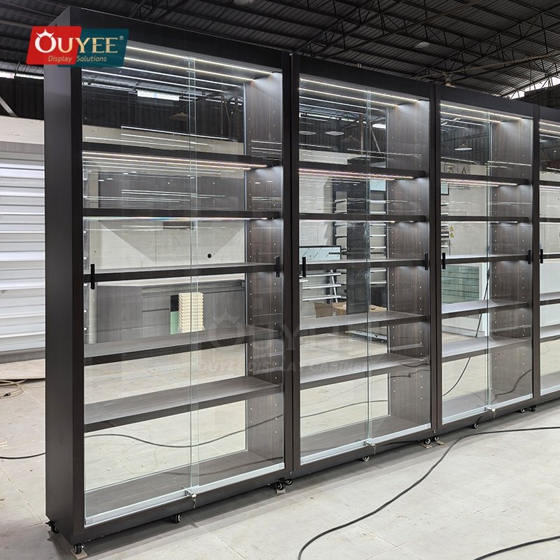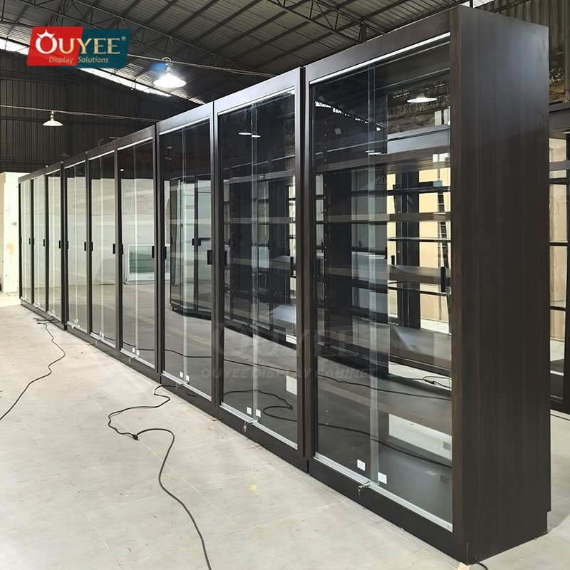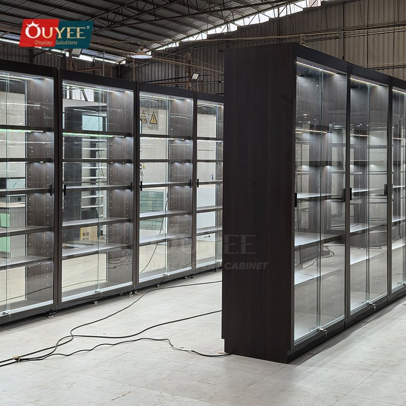 Built with tempered glass, and metal framing, this custom display solution is made for long-term commercial use. OUYEE can adjust cabinet dimensions, shelf positions, lighting temperature, finish tones, storage modules, and logo details to match different retail concepts. If your project also needs related showcase ideas, you can browse our glass display cabinet and display cases pages for more references.