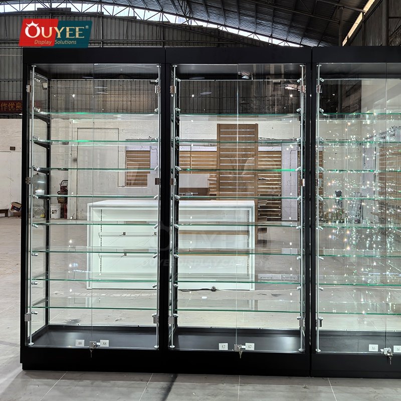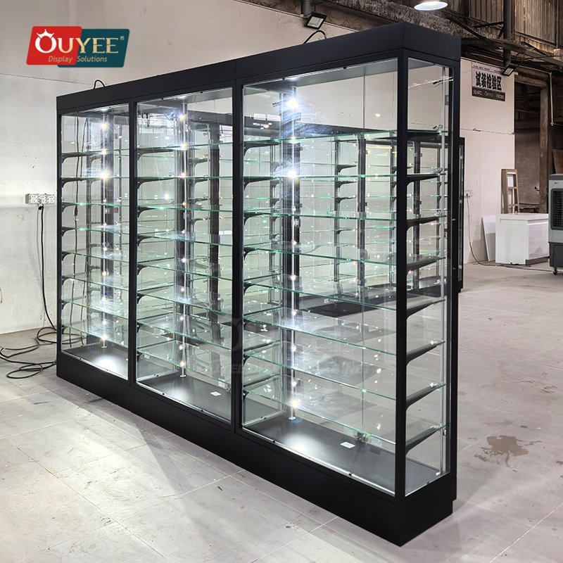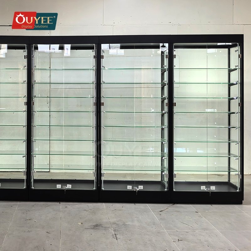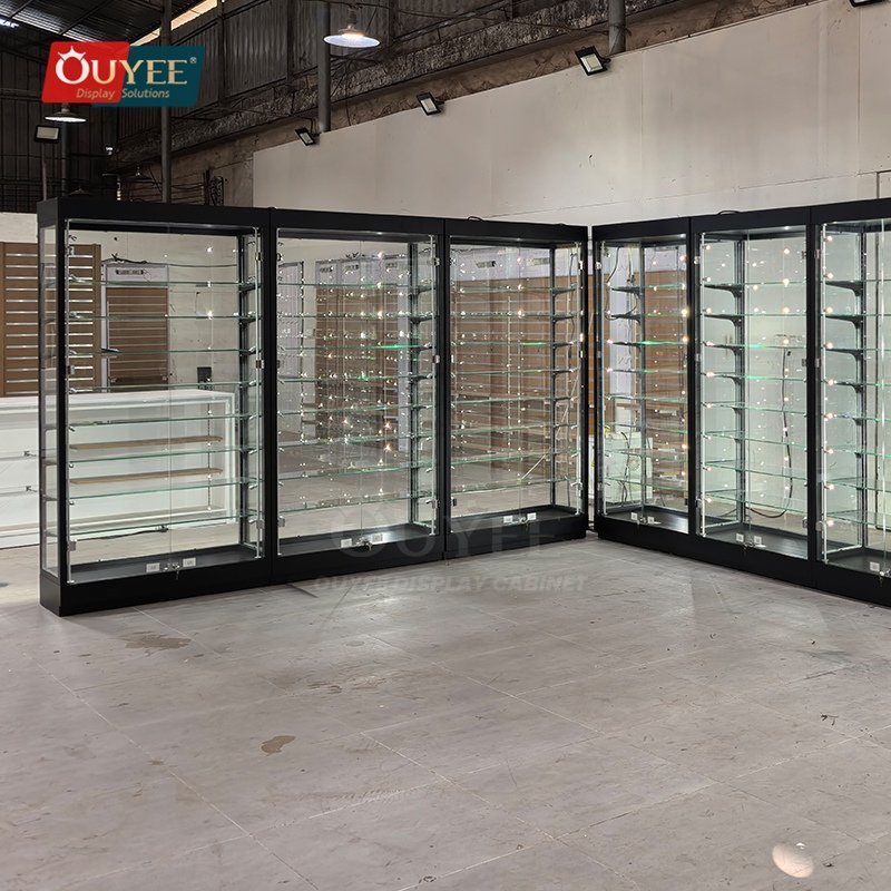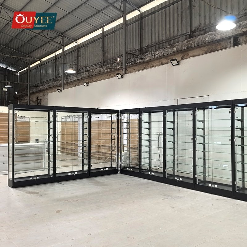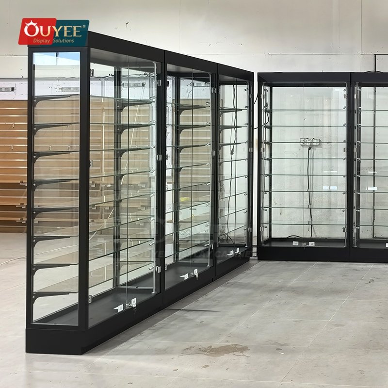 Built with tempered glass, and metal framing, this custom display solution is made for long-term commercial use. OUYEE can adjust cabinet dimensions, shelf positions, lighting temperature, finish tones, storage modules, and logo details to match different retail concepts. If your project also needs related showcase ideas, you can browse our glass display cabinet and display cases pages for more references.