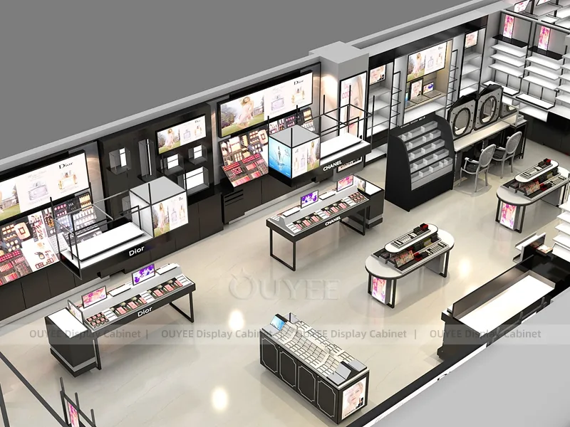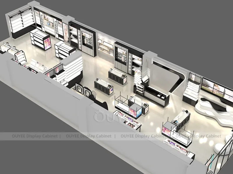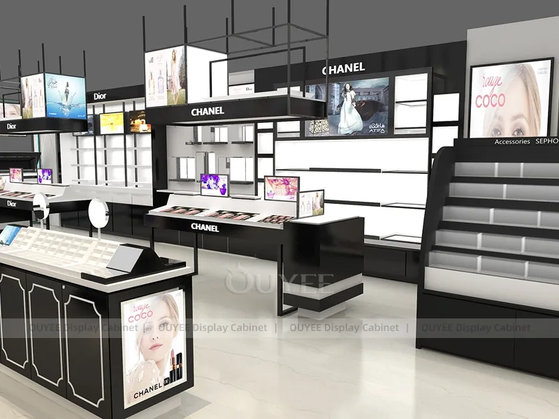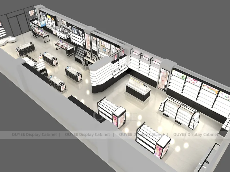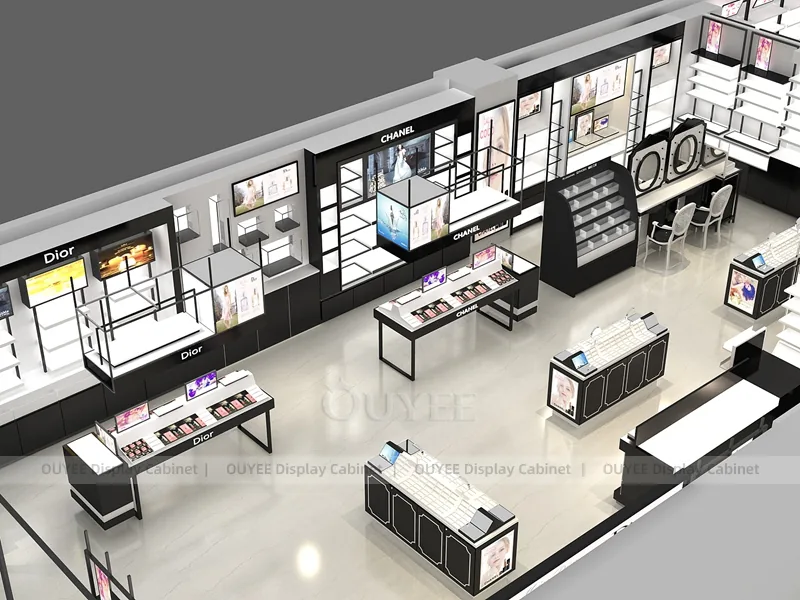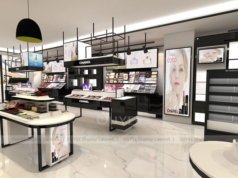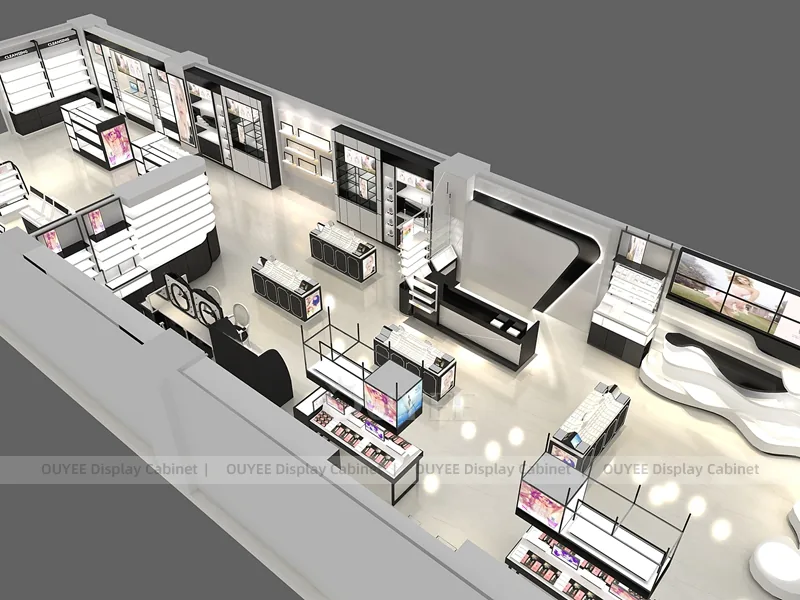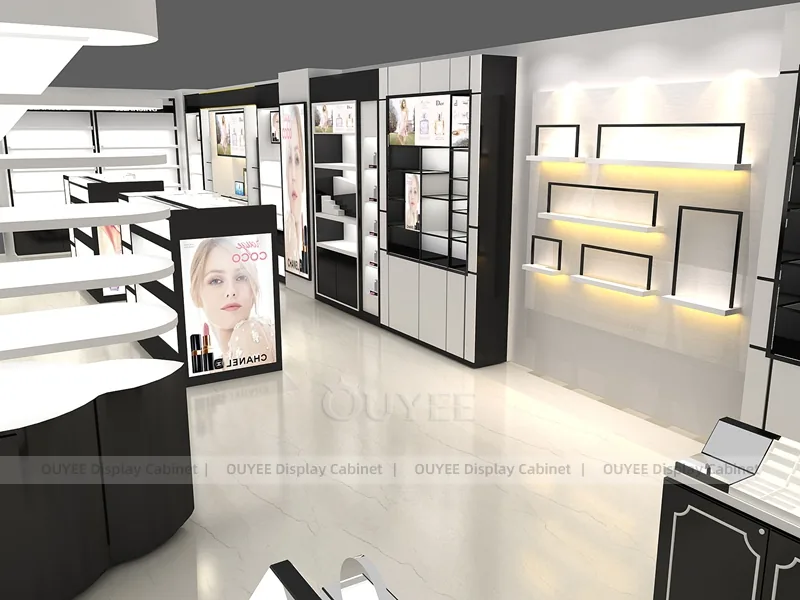 OUYEE develops the Monochrome Makeup Store Display for beauty retailers that need clearer product zoning, stronger brand presentation, and reliable fixture production for commercial store projects.