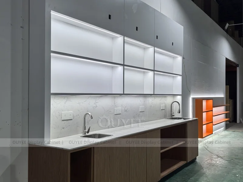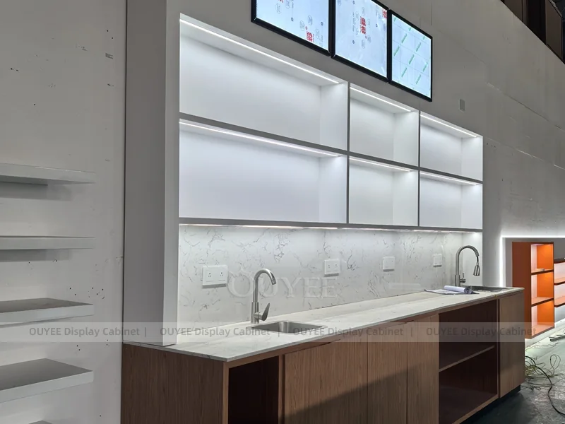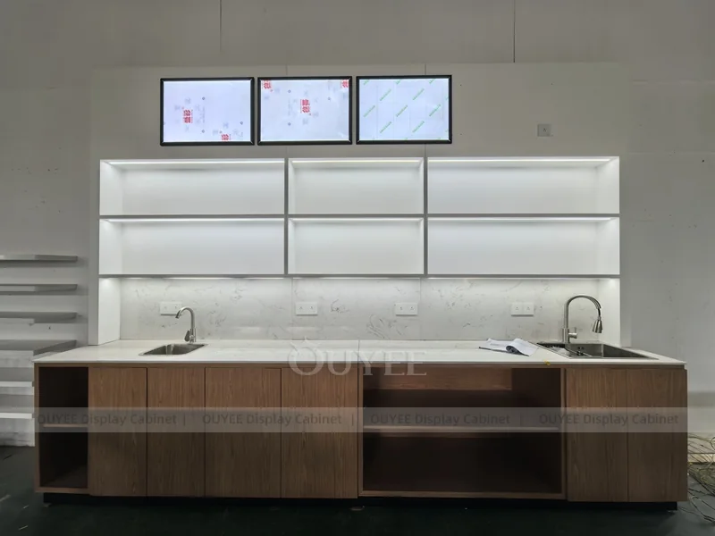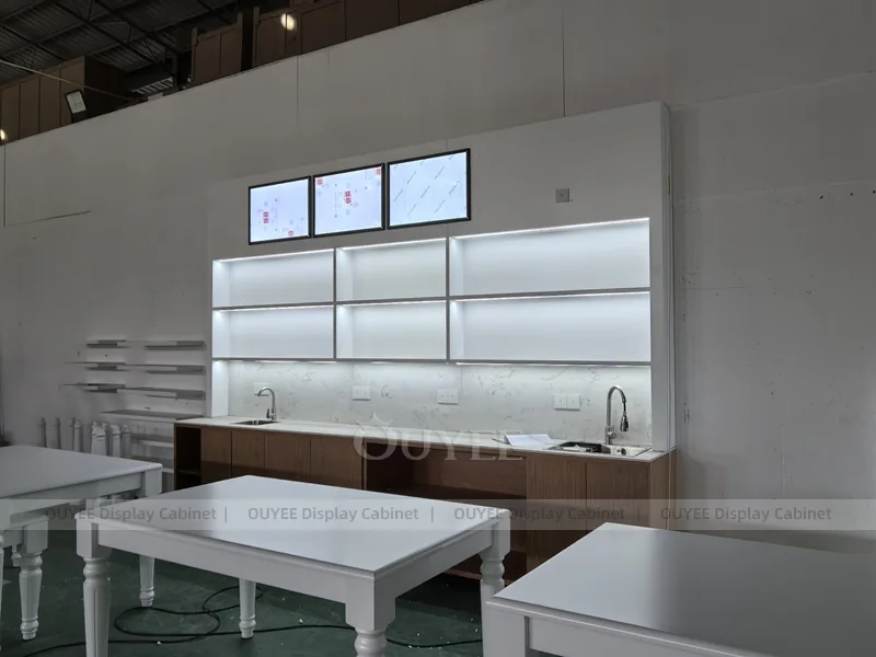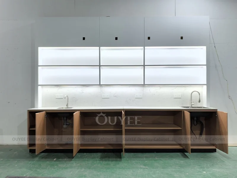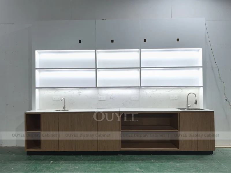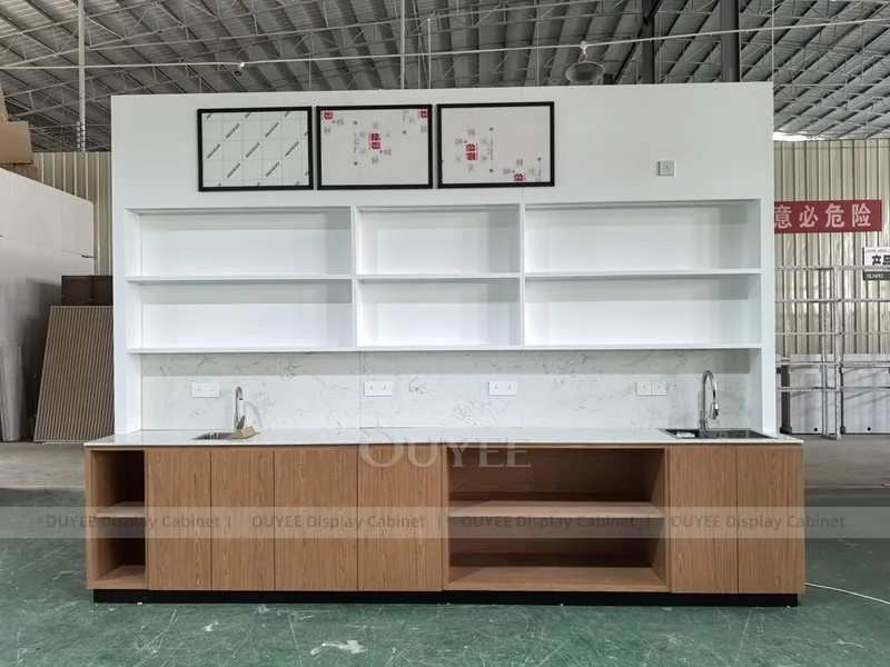 OUYEE supports coffee counter design, shop drawings, material selection, manufacturing, packing, and export delivery. We can customize the fixture according to your brand color, logo, store size, electrical planning, and installation requirements.