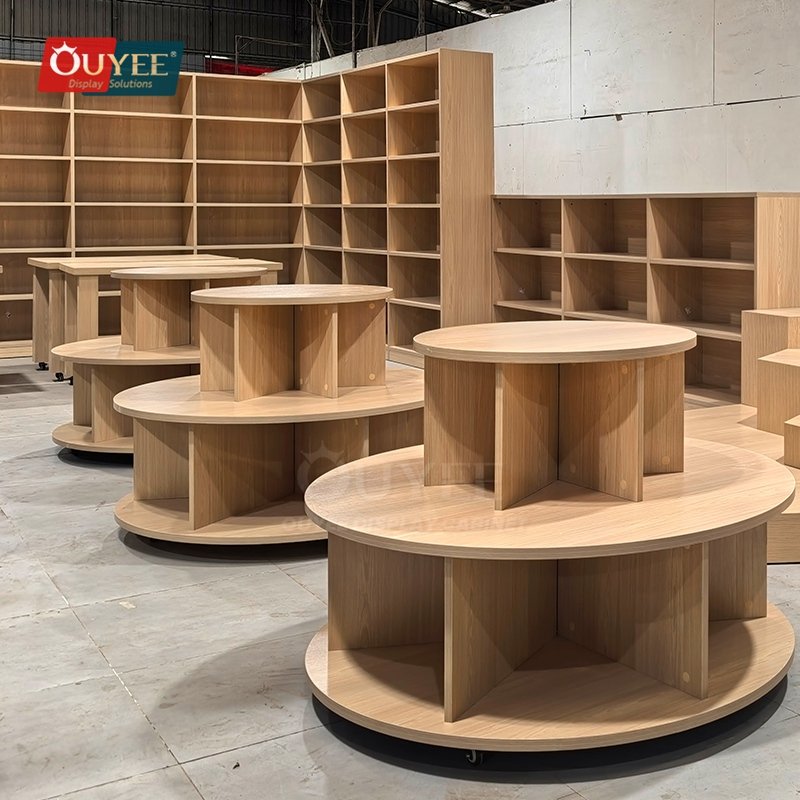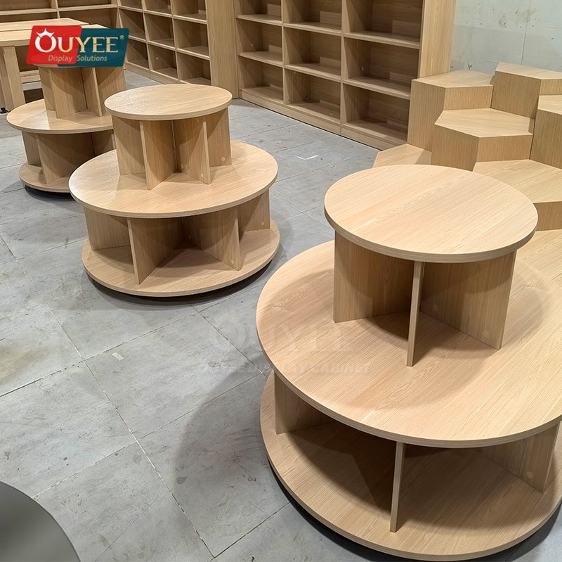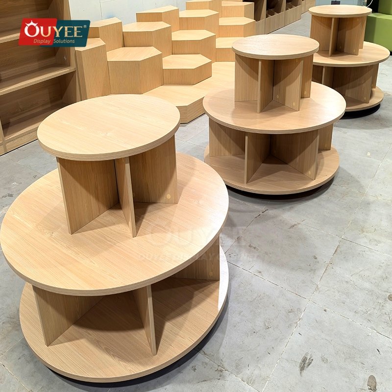 Built for specialty retailers, boutiques, branded chain stores, and high-traffic merchandising environments, the Natural Wood Round Tiered Display Stand Set gives retailers a more structured way to present merchandise, guide shopper attention, and keep display updates efficient across changing collections. For similar fixture references, you can visit our display shelves page, browse more store shelving displays, and review OUYEE production support on the manufacturing and materials pages.