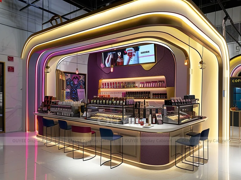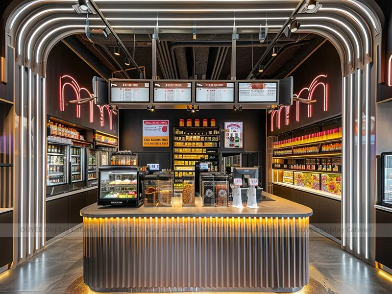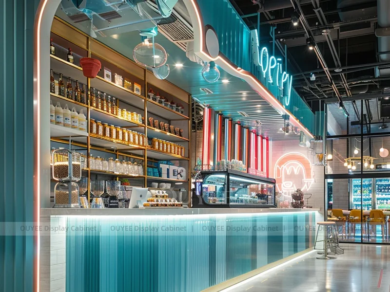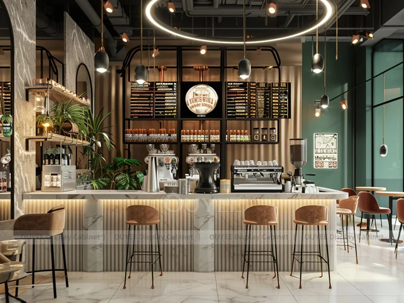 OUYEE supports coffee counter design, shop drawings, material selection, manufacturing, packing, and export delivery. We can customize the fixture according to your brand color, logo, store size, electrical planning, and installation requirements.