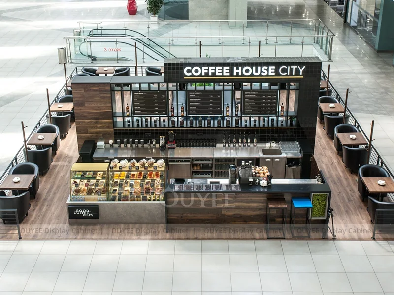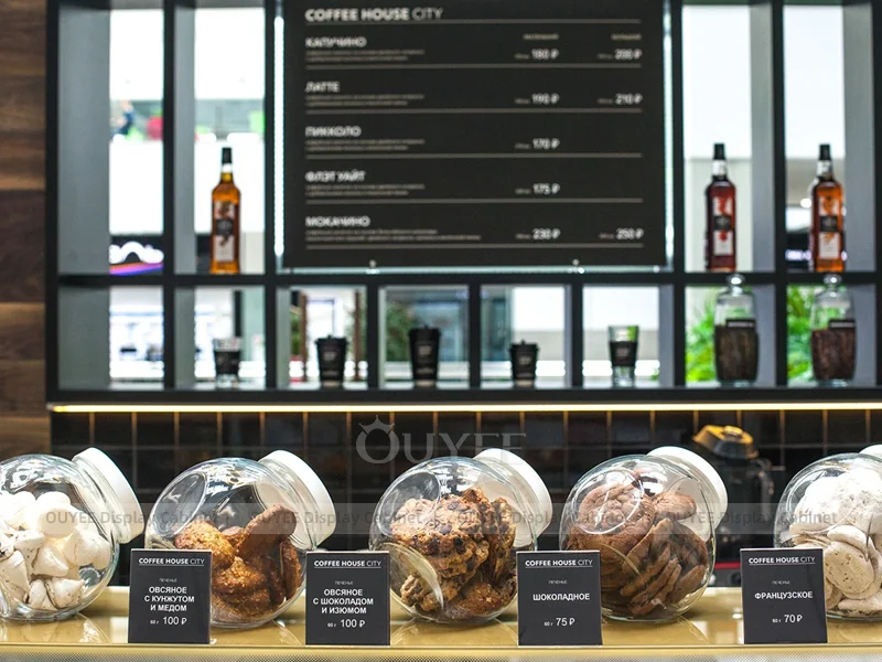 OUYEE supports coffee counter design, shop drawings, material selection, manufacturing, packing, and export delivery. We can customize the fixture according to your brand color, logo, store size, electrical planning, and installation requirements.