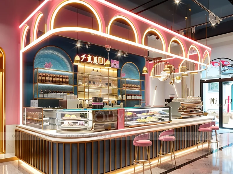 OUYEE supports coffee counter design, shop drawings, material selection, manufacturing, packing, and export delivery. We can customize the fixture according to your brand color, logo, store size, electrical planning, and installation requirements.