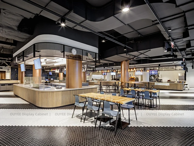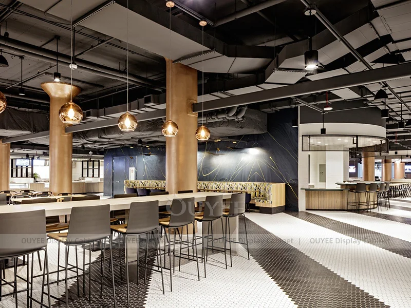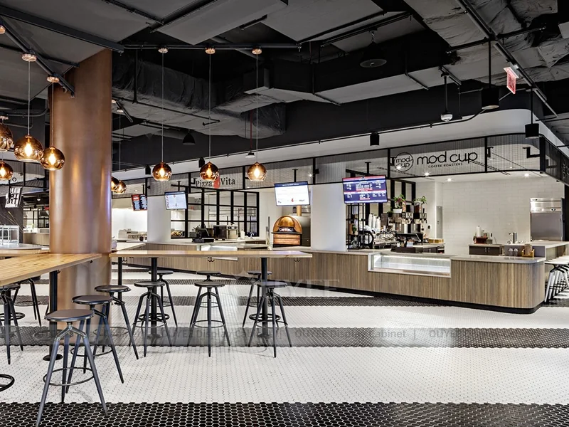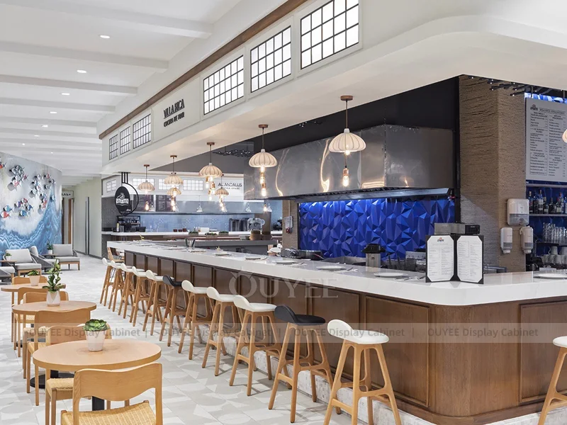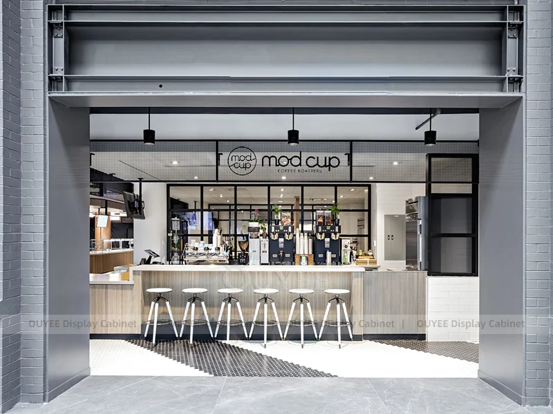 OUYEE supports coffee counter design, shop drawings, material selection, manufacturing, packing, and export delivery. We can customize the fixture according to your brand color, logo, store size, electrical planning, and installation requirements.