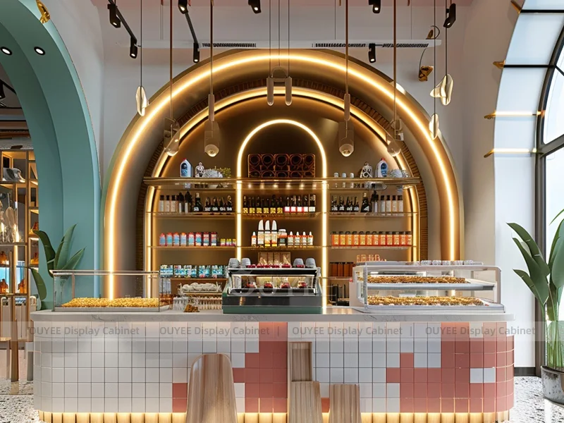 OUYEE supports coffee counter design, shop drawings, material selection, manufacturing, packing, and export delivery. We can customize the fixture according to your brand color, logo, store size, electrical planning, and installation requirements.