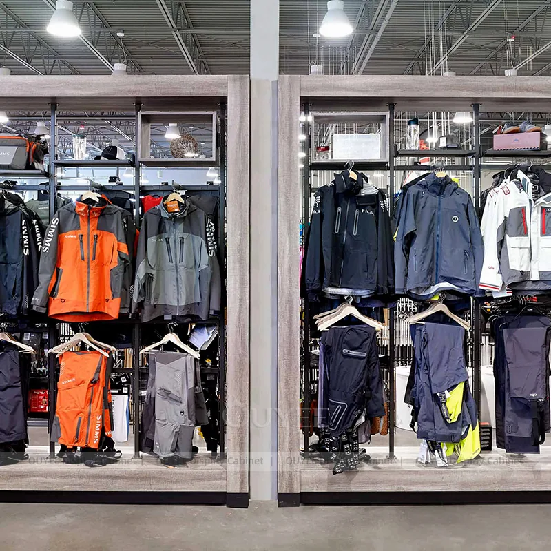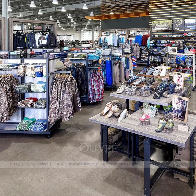 OUYEE can produce this model with commercial fixture panels, durable metal framing, and custom retail finish details. Depending on the project, we can adjust dimensions, storage capacity, shelf depths, hanging components, branding graphics, and finish details so the system fits the real floor plan and product mix. Related inspiration is available across clothing racks, gondola shelves and our store fixture manufacturing service.