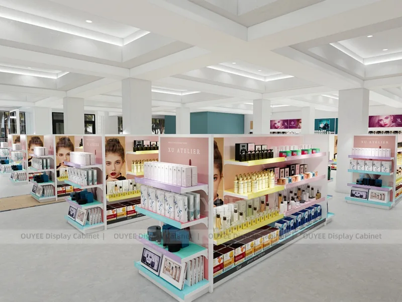 The Pastel Beauty Gondolas Display is built for cosmetic shops, makeup boutiques, beauty chain stores, department-store counters, and branded retail interiors. It helps retailers present makeup, skincare, fragrance, testers, beauty tools, and promotional retail collections with a cleaner visual story and more practical daily merchandising control.