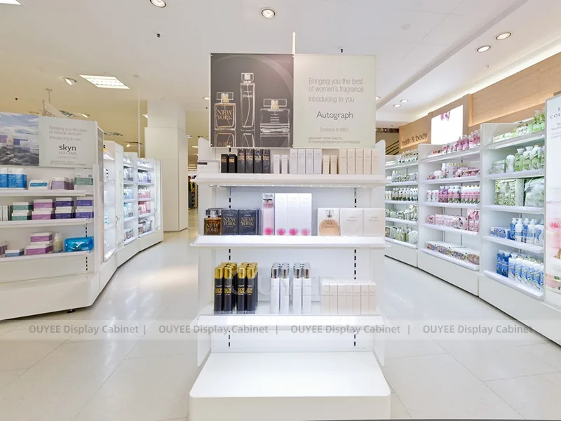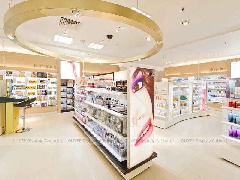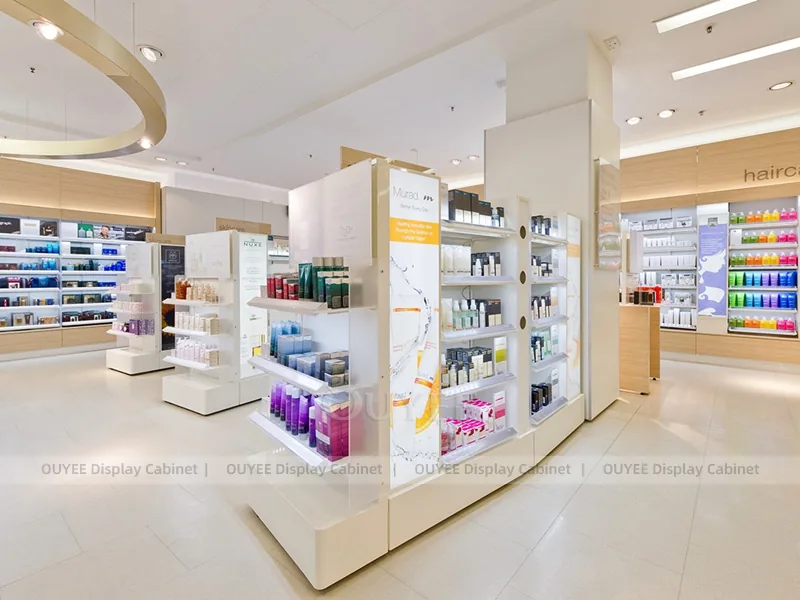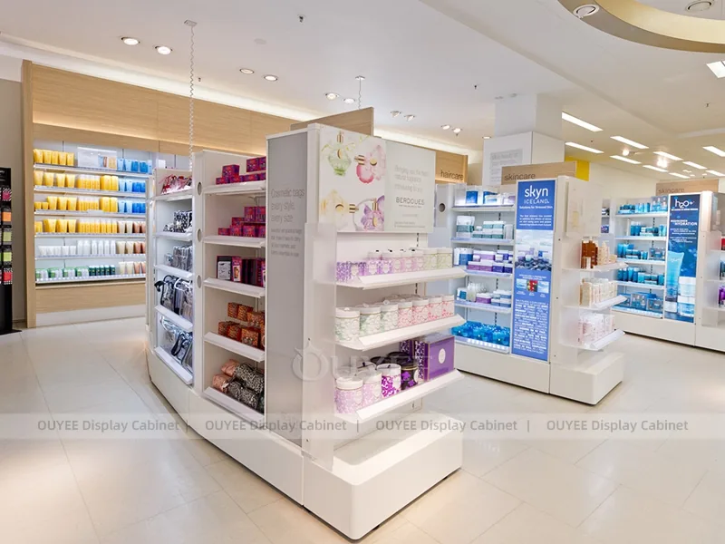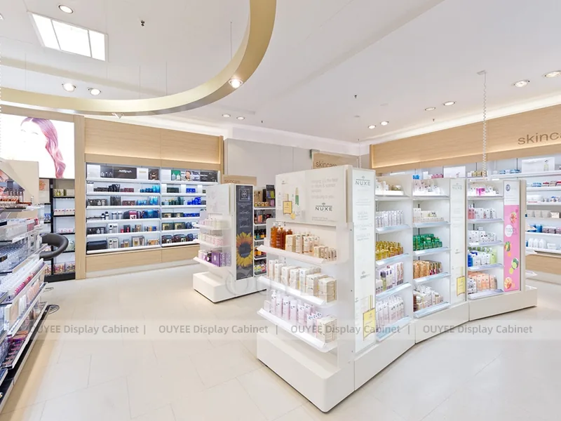 This configuration works well for pharmacy beauty zones, health and beauty stores, skincare retailers, and cosmetic shelf areas. It is suitable for cosmetic store openings, beauty shop renovations, department-store counter upgrades, pop-up retail projects, and custom display fixture programs that need consistent production quality.