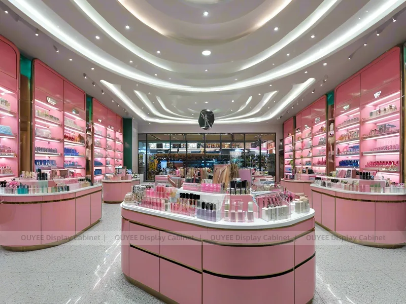 This configuration works well for cosmetic shops, makeup boutiques, beauty chain stores, department-store counters, and branded retail interiors. It is suitable for cosmetic store openings, beauty shop renovations, department-store counter upgrades, pop-up retail projects, and custom display fixture programs that need consistent production quality.