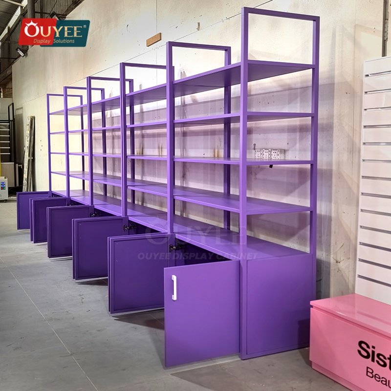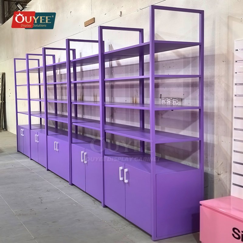 Built for specialty retailers, boutiques, branded chain stores, and high-traffic merchandising environments, the Purple Freestanding Open Shelf Display Rack gives retailers a more structured way to present merchandise, guide shopper attention, and keep display updates efficient across changing collections. For similar fixture references, you can visit our display shelves page, browse more store shelving displays, and review OUYEE production support on the manufacturing and materials pages.
