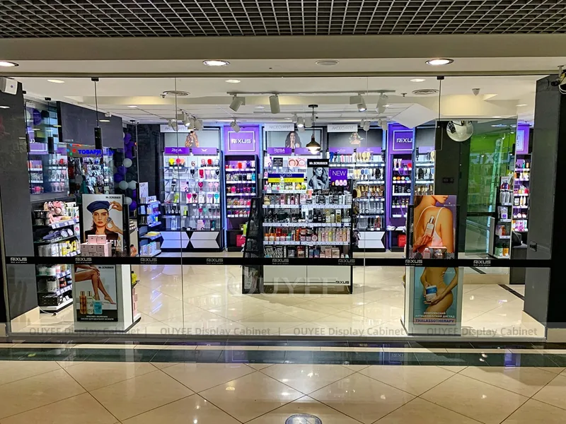 Designed as a cosmetic shop display solution, the Purple Mall Beauty Store Display balances branded appearance, product capacity, customer browsing flow, and custom manufacturing flexibility.
