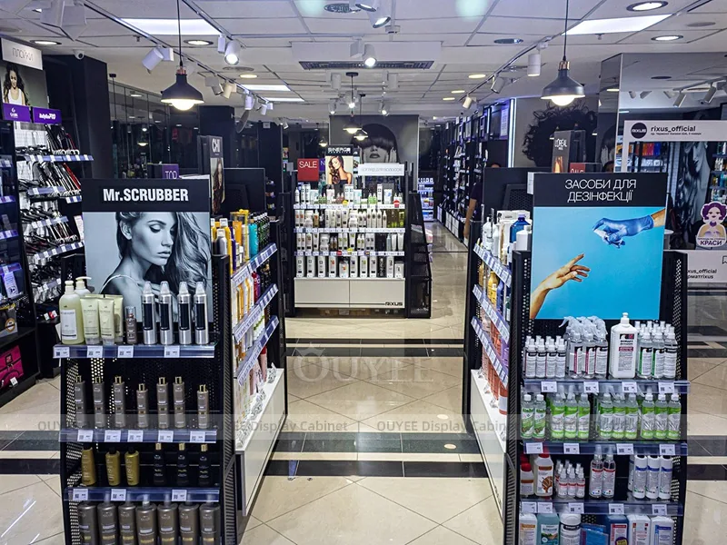 This cosmetic shop display solution helps stores organize makeup, skincare, fragrance, testers, beauty tools, and promotional retail collections with clear category separation, stronger tester access, and a more polished shopping atmosphere. It is useful for beauty retailers that want product displays to feel coordinated across counters, wall bays, shelving islands, and promotional feature areas.