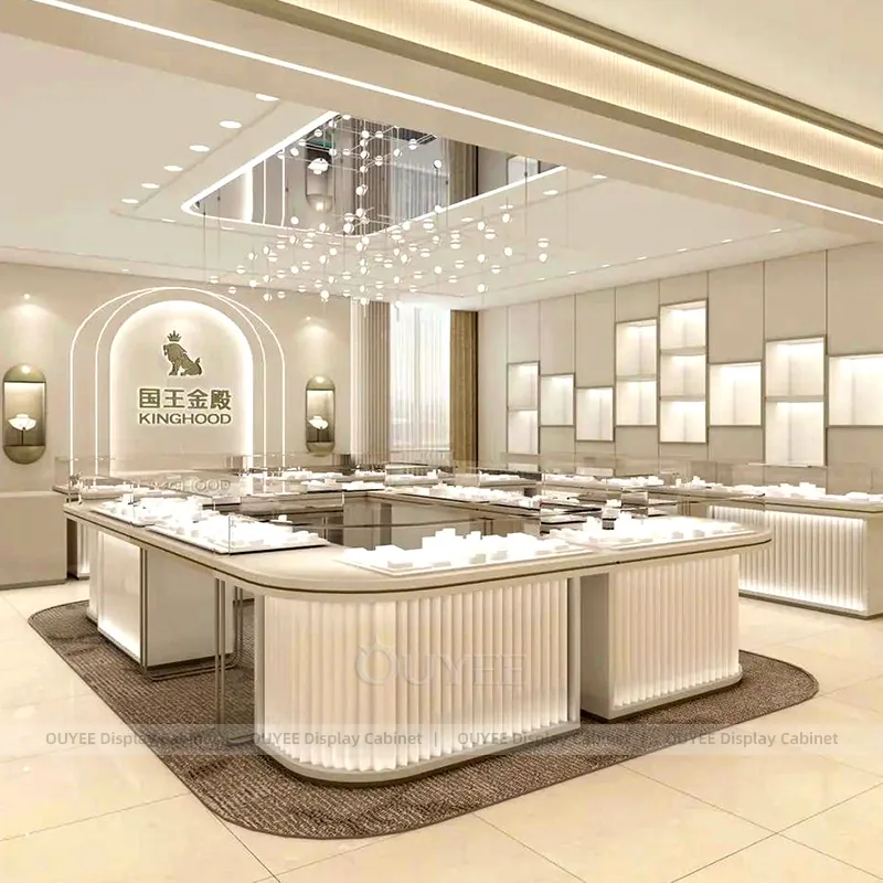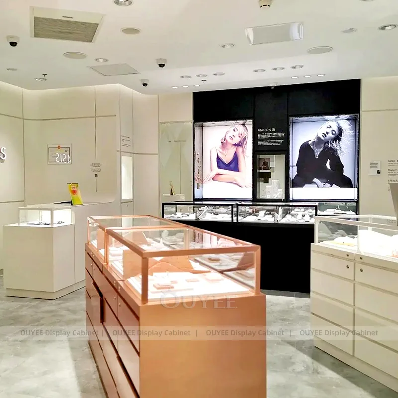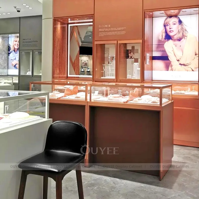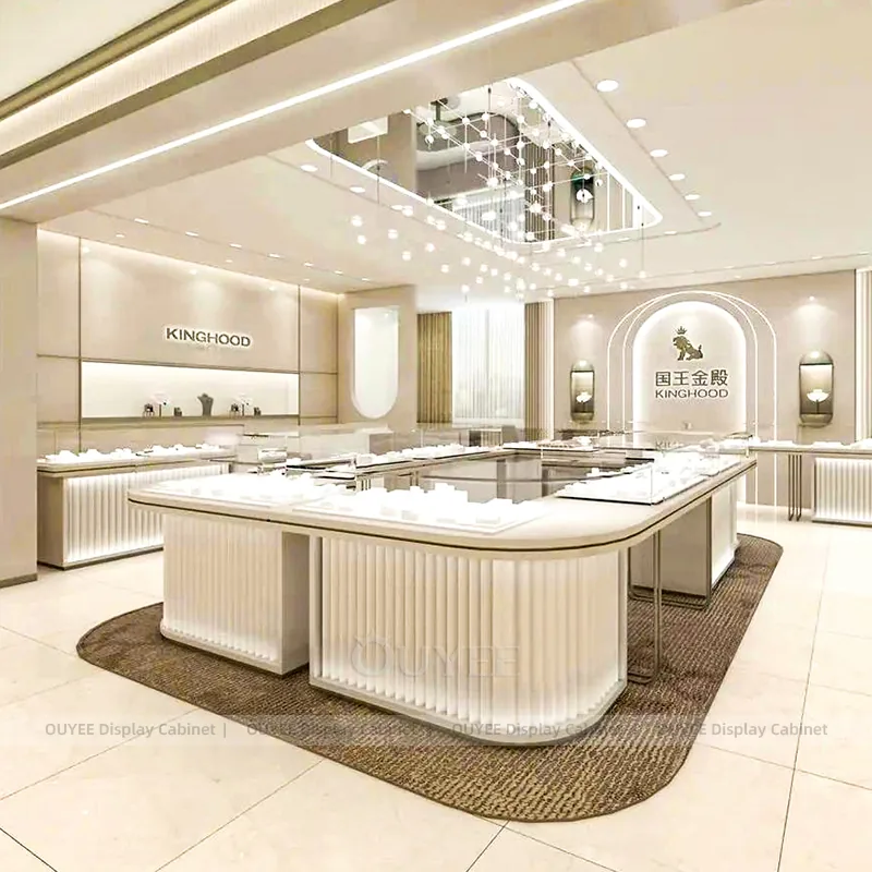 This configuration works well for fine jewelry stores, mall boutique islands, luxury watch counters, and premium showroom layouts. It is suitable for projects that need elegant display security, premium lighting atmosphere, and a coordinated jewelry presentation language across the full boutique.