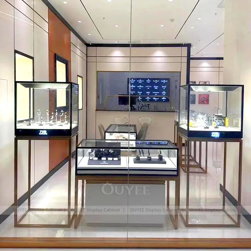 This configuration works well for fine jewelry boutiques, luxury mall stores, watch retailers, and premium accessories showrooms. It is suitable for projects that need elegant display security, premium lighting atmosphere, and a coordinated jewelry presentation language across the full boutique.
