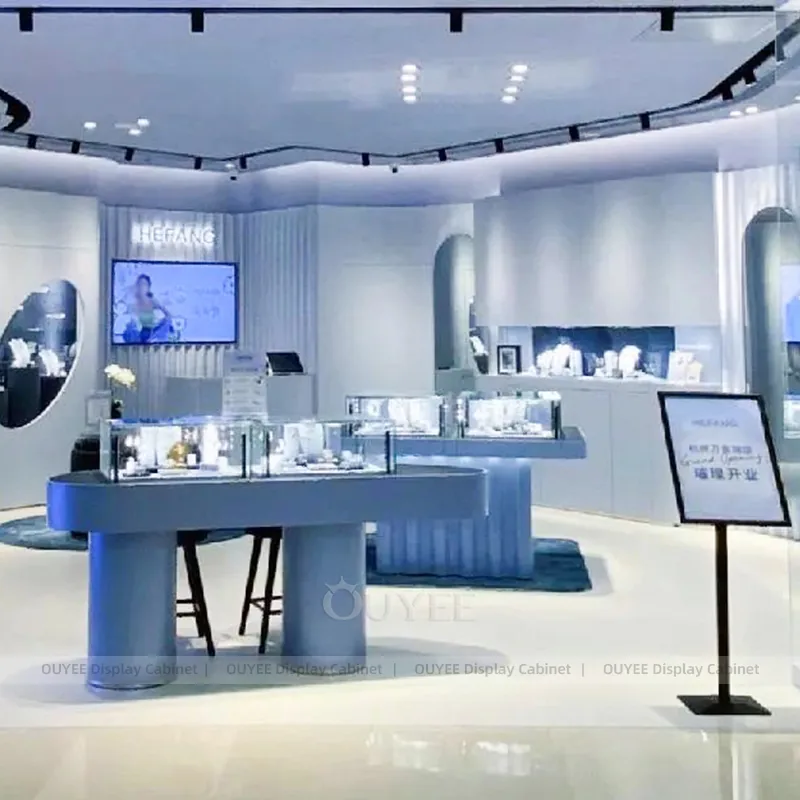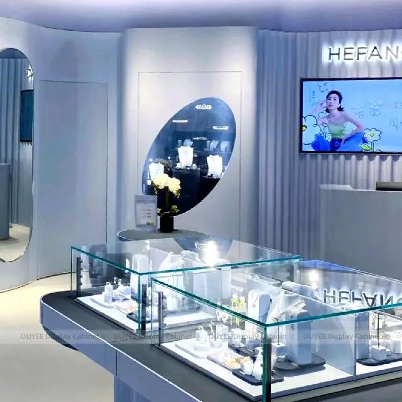 OUYEE develops Refined Marble Accent Jewelry Showcases for fine jewelry boutiques, luxury mall stores, watch retailers, and premium accessories showrooms. This custom jewelry showcase concept helps luxury retailers present rings, necklaces, watches, and high-value accessories with a calmer visual rhythm and more premium customer perception.
