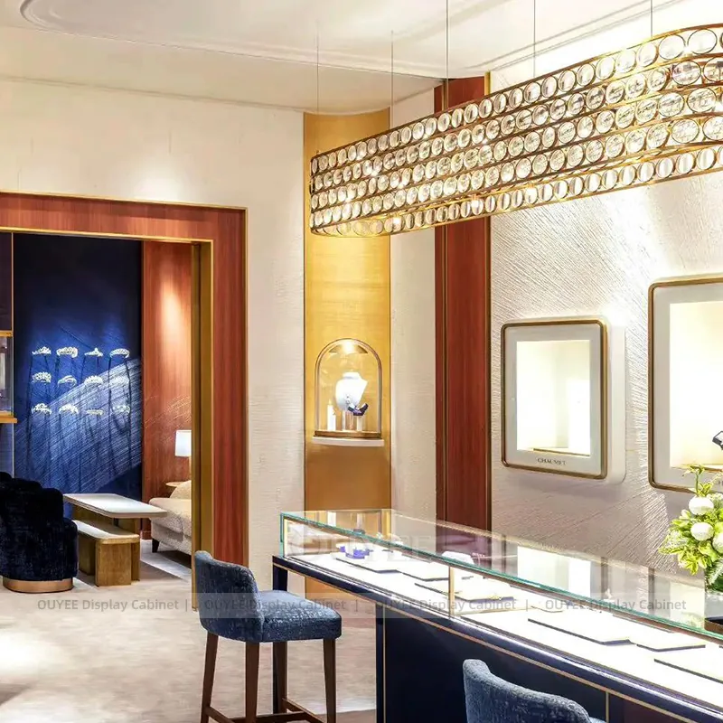 This configuration works well for fine jewelry stores, mall boutique islands, luxury watch counters, and premium showroom layouts. It is suitable for projects that need elegant display security, premium lighting atmosphere, and a coordinated jewelry presentation language across the full boutique.