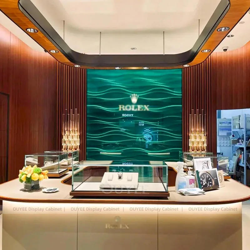 Customization: Size, finish, showcase layout, storage, lighting, logo, display zoning, and consultation details