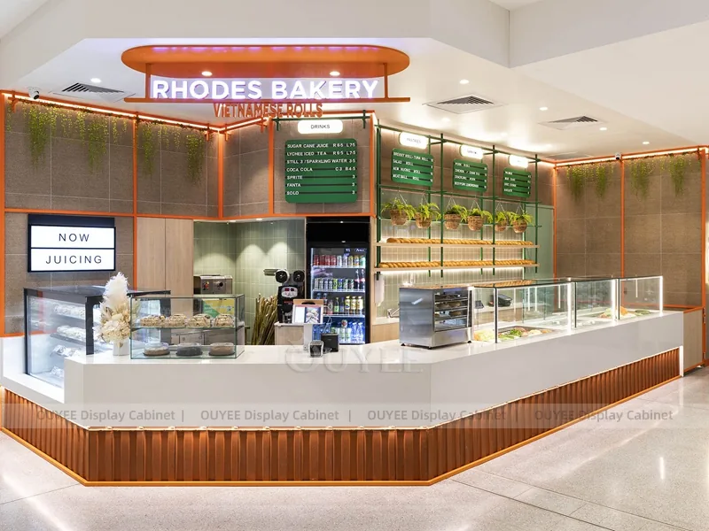 Rhodes Bakery Counter Bubble Tea Shop Display for Custom Bubble Tea Shop and Cafe Store Design