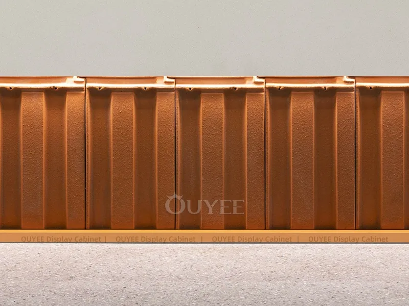 OUYEE can customize this model with durable counter and storage modules. Store owners can adjust size, finish, layout, logo panel, counter height, storage structure, service opening, pickup area, cup storage, equipment clearance, dessert display depth, front presentation area, menu areas, cup storage, topping display, lighting position, counter depth, and brand logo details to match the final shop drawing.