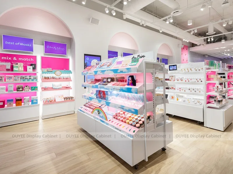 OUYEE develops the Riley Rose Store Display for beauty retailers that need clearer product zoning, stronger brand presentation, and reliable fixture production for commercial store projects.