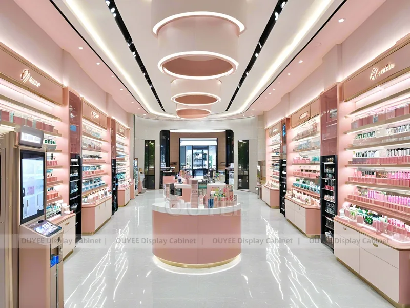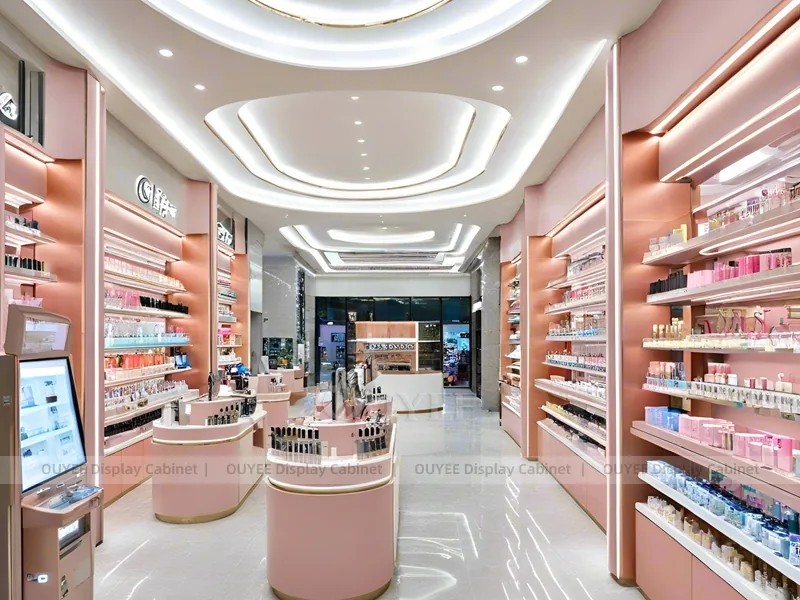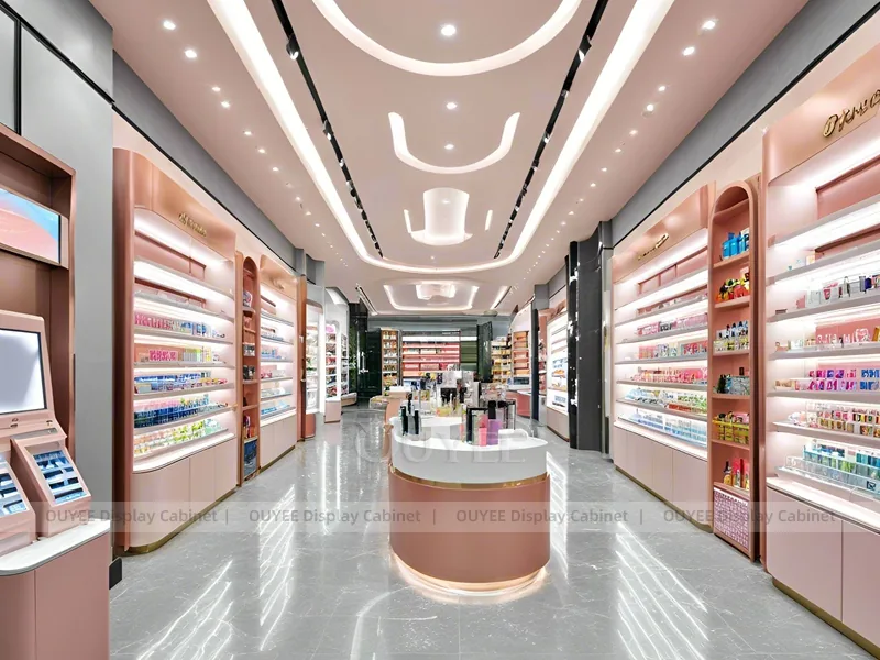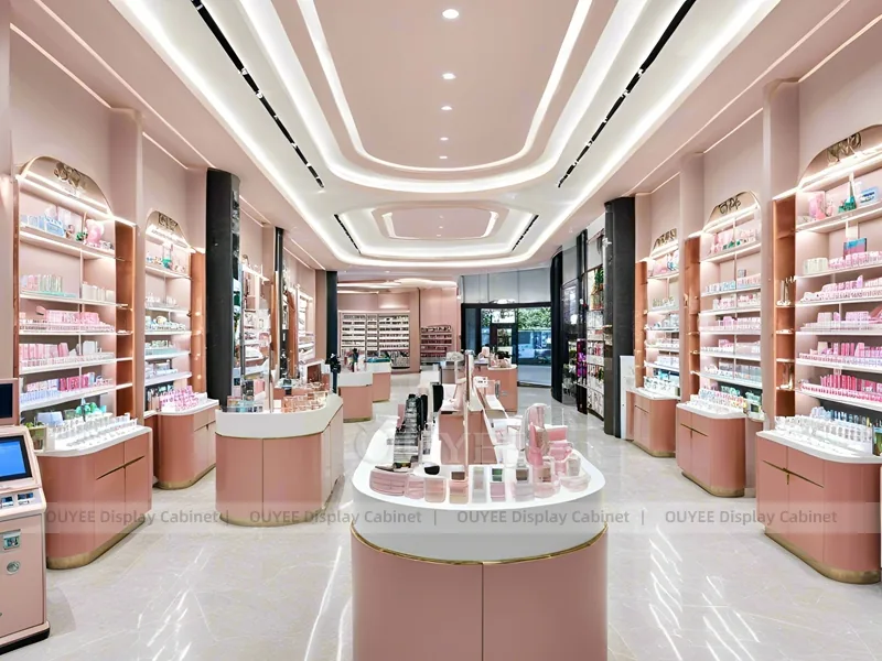 OUYEE develops the Soft Pink Wall Arches Display for beauty retailers that need clearer product zoning, stronger brand presentation, and reliable fixture production for commercial store projects.