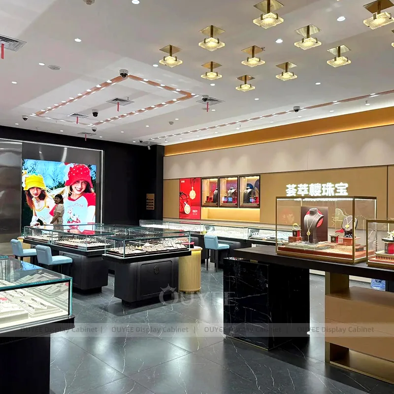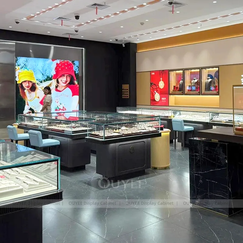 Style: Custom jewelry display system with secure showcases, luxury finishes, and boutique-ready layout planning