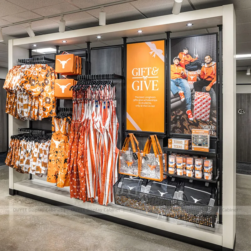 OUYEE can produce this model with commercial fixture panels, durable metal framing, and custom retail finish details. Depending on the project, we can adjust dimensions, storage capacity, shelf depths, hanging components, branding graphics, and finish details so the system fits the real floor plan and product mix. Related inspiration is available across clothing racks, retail store display and our store fixture manufacturing service.