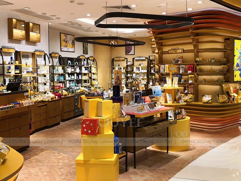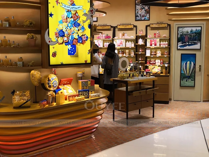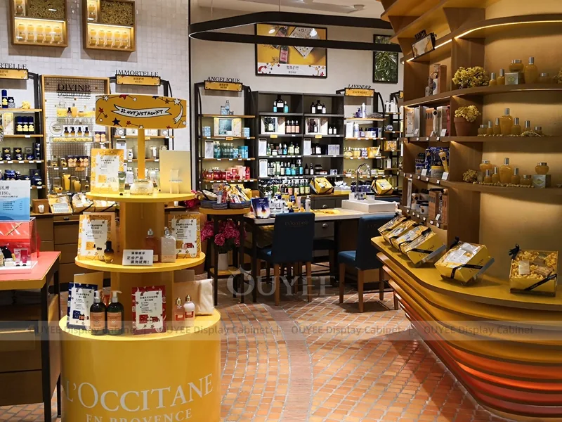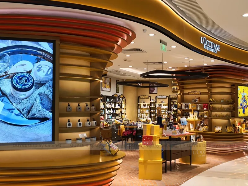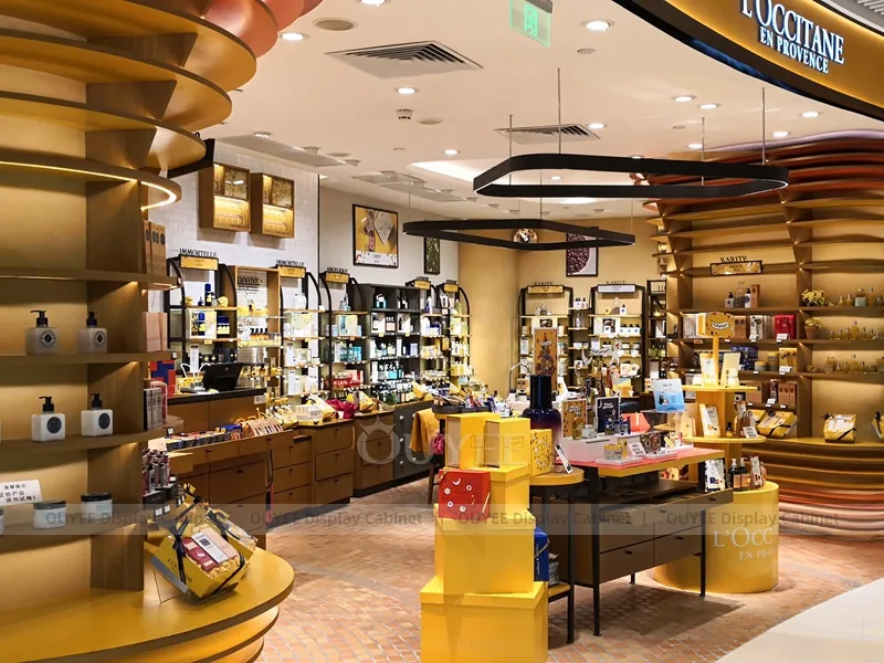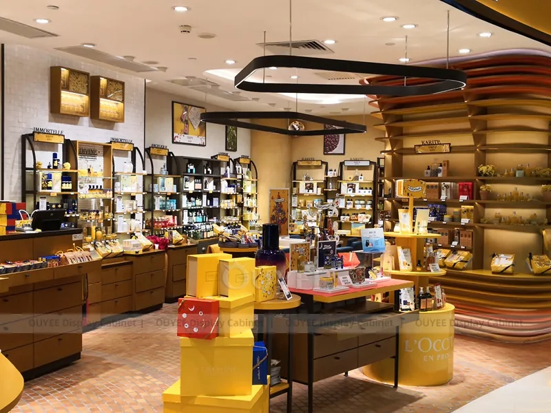 OUYEE develops the Warm Wood Beauty Store Display for beauty retailers that need clearer product zoning, stronger brand presentation, and reliable fixture production for commercial store projects.