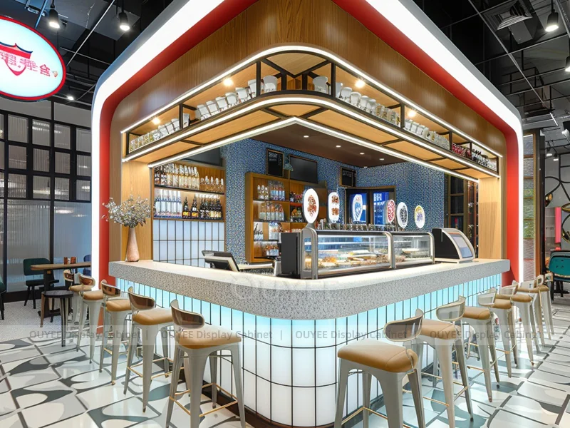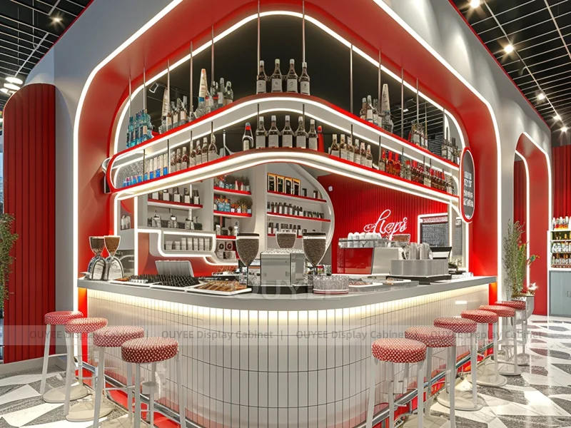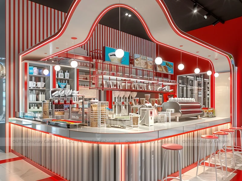 OUYEE supports coffee counter design, shop drawings, material selection, manufacturing, packing, and export delivery. We can customize the fixture according to your brand color, logo, store size, electrical planning, and installation requirements.