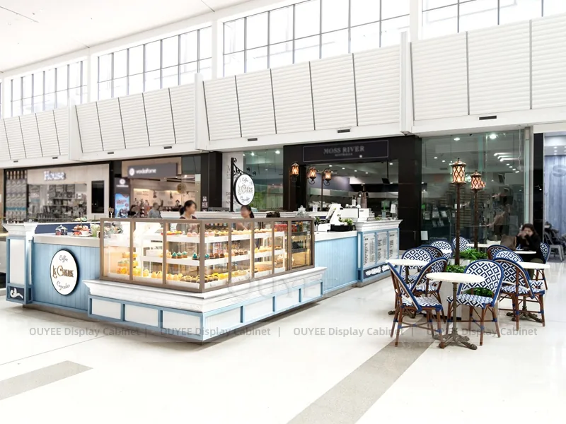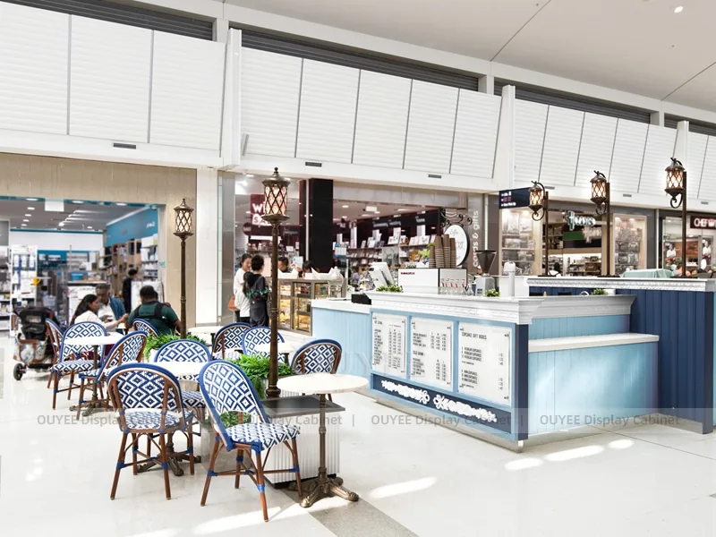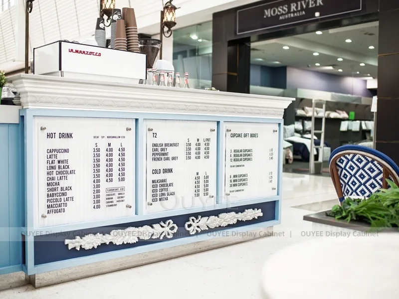 White Blue Cafe Kiosk for Custom Bubble Tea Shop and Cafe Store Design