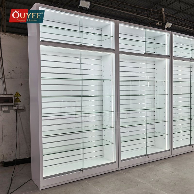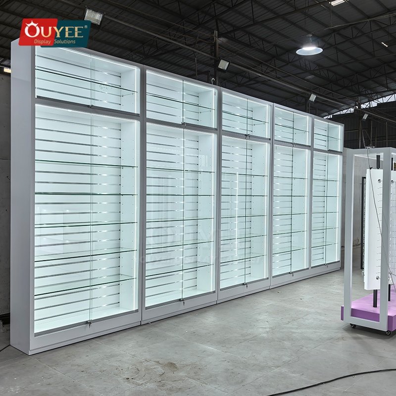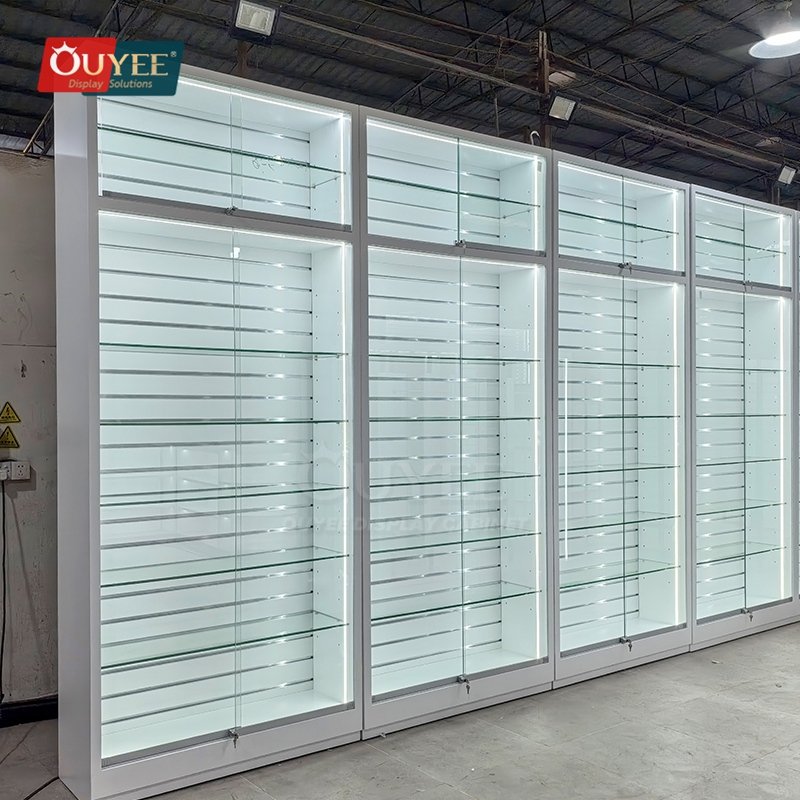 Built with tempered glass, and integrated LED lighting, this custom display solution is made for long-term commercial use. OUYEE can adjust cabinet dimensions, shelf positions, lighting temperature, finish tones, storage modules, and logo details to match different retail concepts. If your project also needs related showcase ideas, you can browse our glass display cabinet and display cases pages for more references.