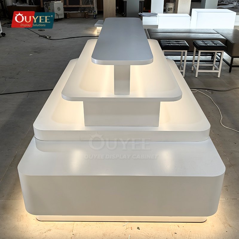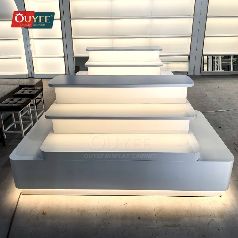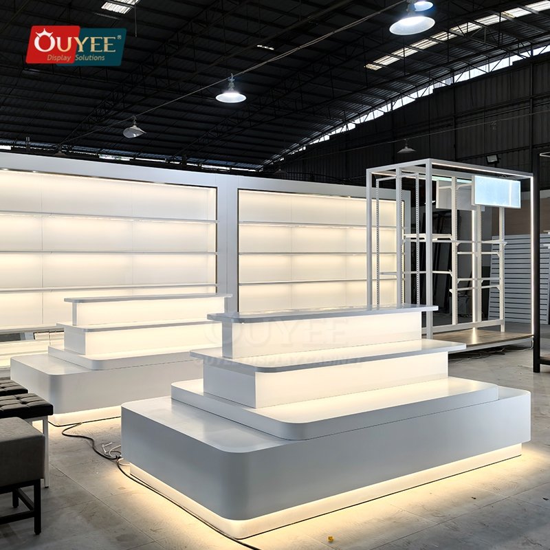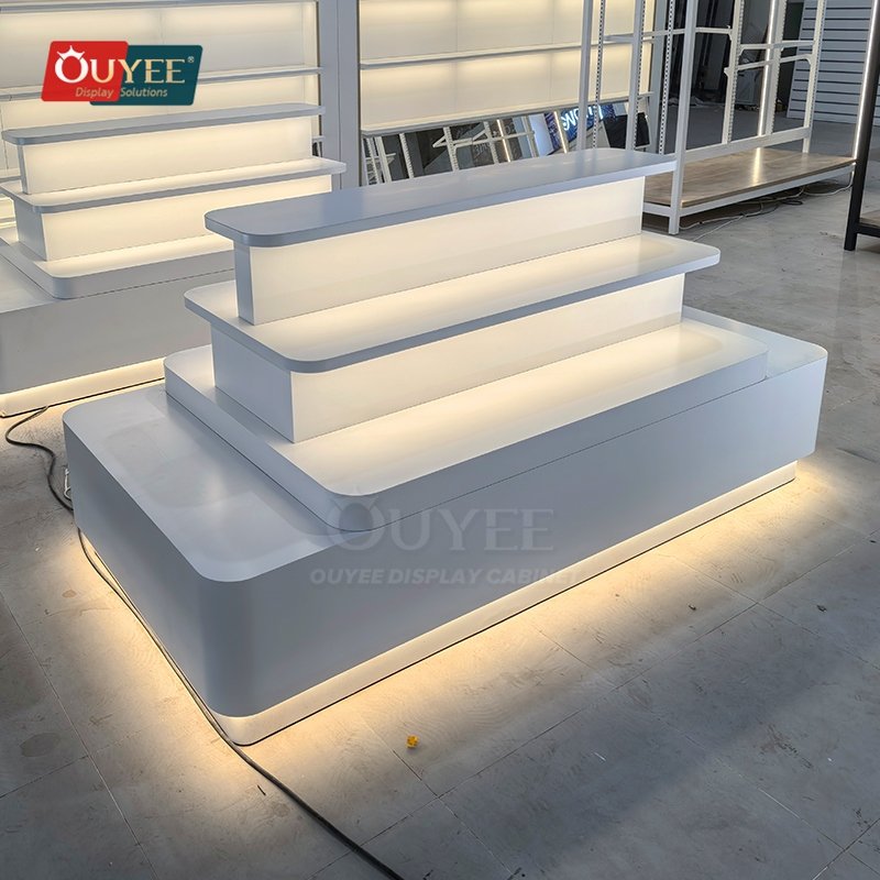 Built for specialty retailers, boutiques, branded chain stores, and high-traffic merchandising environments, the White LED Tiered Feature Display Stand gives retailers a more structured way to present merchandise, guide shopper attention, and keep display updates efficient across changing collections. For similar fixture references, you can visit our display shelves page, browse more store shelving displays, and review OUYEE production support on the manufacturing and materials pages.