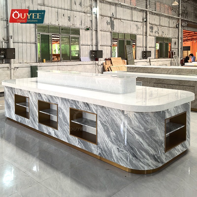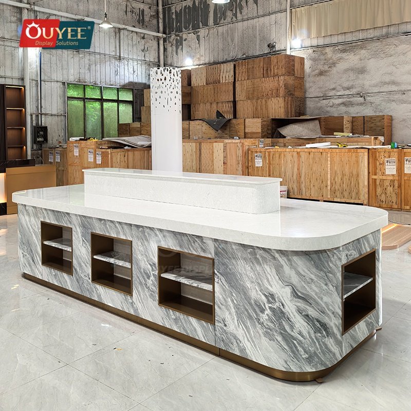 Built for shopping mall stores, open-plan boutiques, promotional zones, and center-floor retail displays, the White Marble Island Display Stand with Storage gives retailers a more structured way to present merchandise, guide shopper attention, and keep display updates efficient across changing collections. For similar fixture references, you can visit our display shelves page, browse more store shelving displays, and review OUYEE production support on the manufacturing and materials pages.