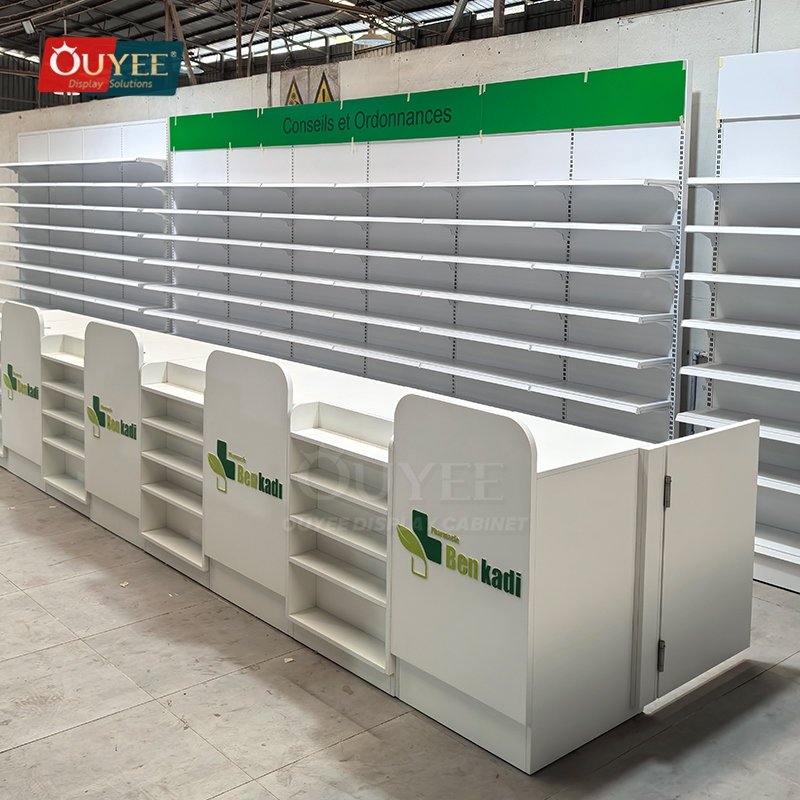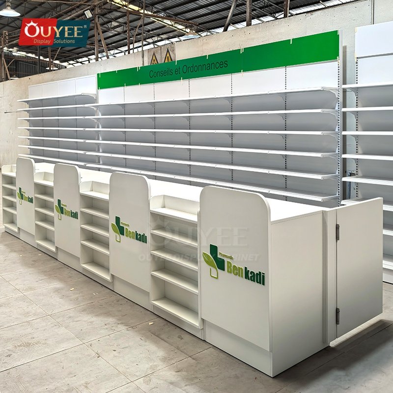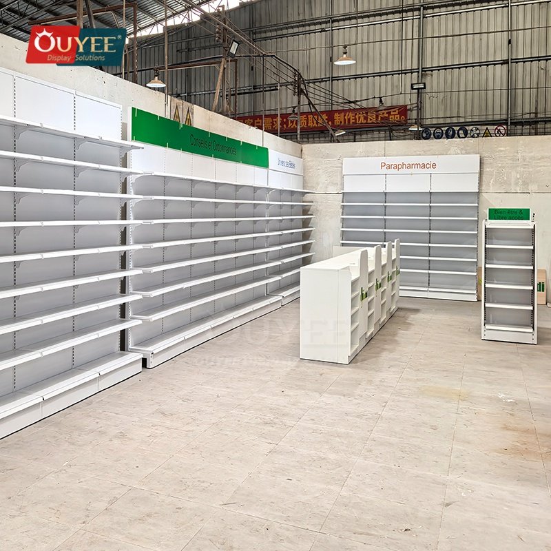 OUYEE develops White Pharmacy Wall Display Rack Set for pharmacies, wellness retailers, personal care chains, and health product stores. This display rack supports cleaner merchandising, stronger product focus, and flexible custom production for stores that need a more deliberate fixture language. For similar fixture references, you can visit our display shelves page, browse more store shelving displays, and review OUYEE production support on the manufacturing and materials pages.