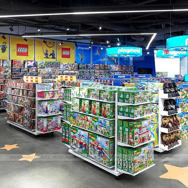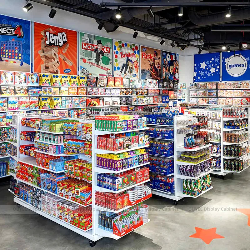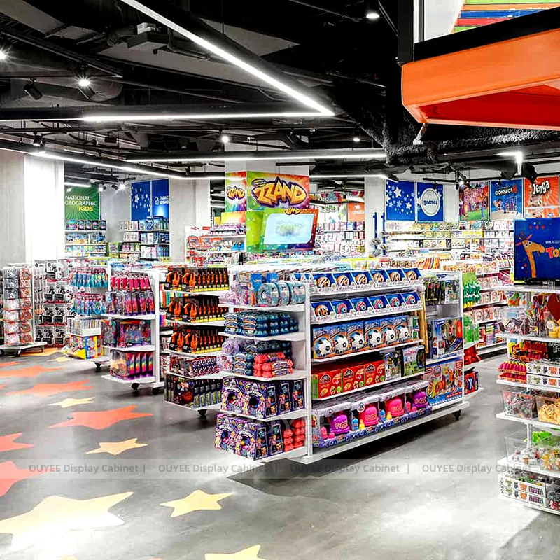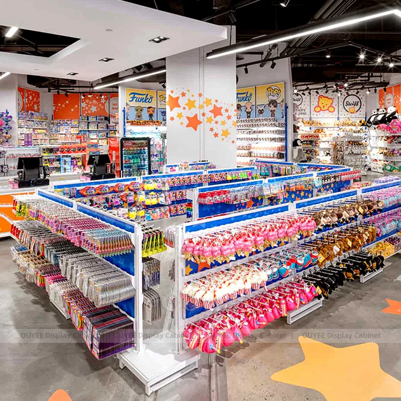 The White Toy Store Gondola Shelving System is designed for museum stores, travel gift shops, themed retail boutiques, and souvenir-focused commercial interiors that need a stronger balance between merchandising capacity, shopper flow, and coordinated visual presentation across wall, floor, and focal display zones.