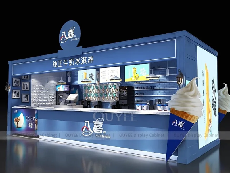 OUYEE supports coffee counter design, shop drawings, material selection, manufacturing, packing, and export delivery. We can customize the fixture according to your brand color, logo, store size, electrical planning, and installation requirements.