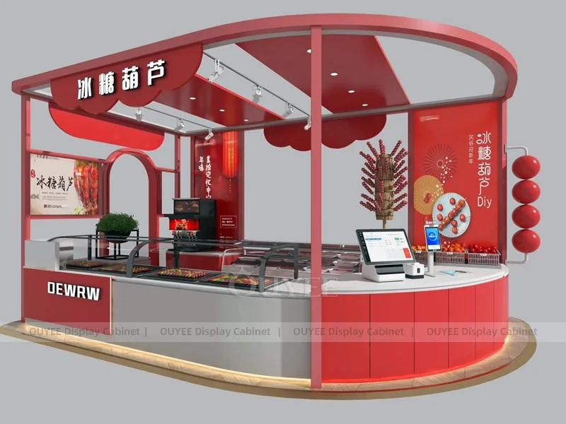• Factory customization is available for counter size, logo, lighting, storage, worktop, and wall display details.