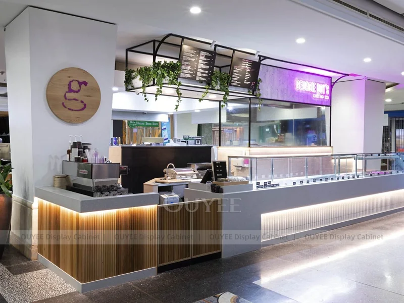 OUYEE supports coffee counter design, shop drawings, material selection, manufacturing, packing, and export delivery. We can customize the fixture according to your brand color, logo, store size, electrical planning, and installation requirements.