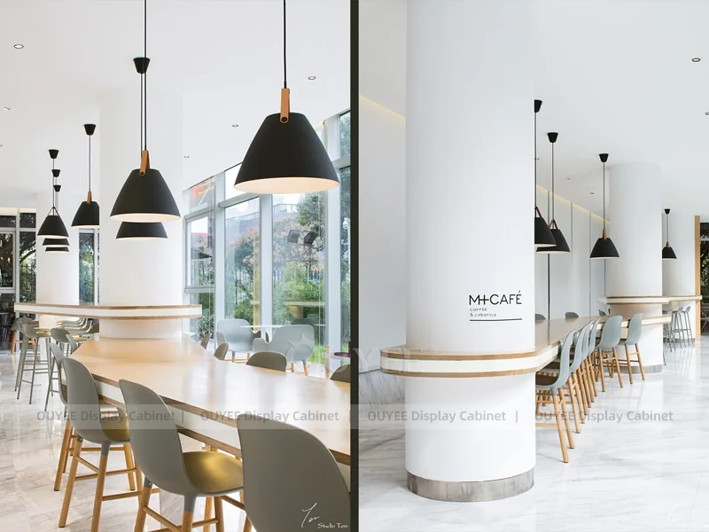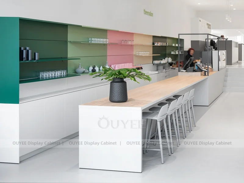 OUYEE supports coffee counter design, shop drawings, material selection, manufacturing, packing, and export delivery. We can customize the fixture according to your brand color, logo, store size, electrical planning, and installation requirements.