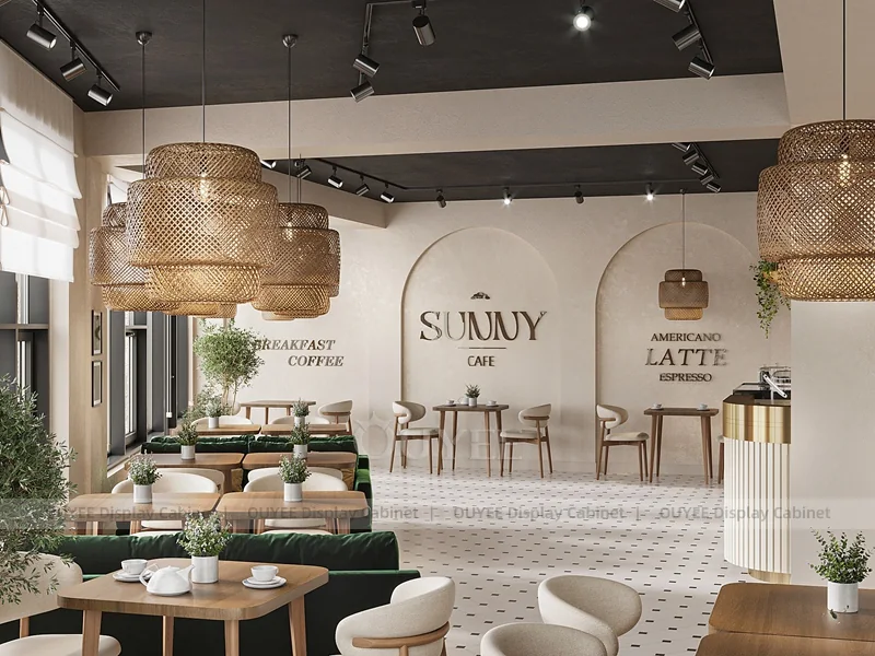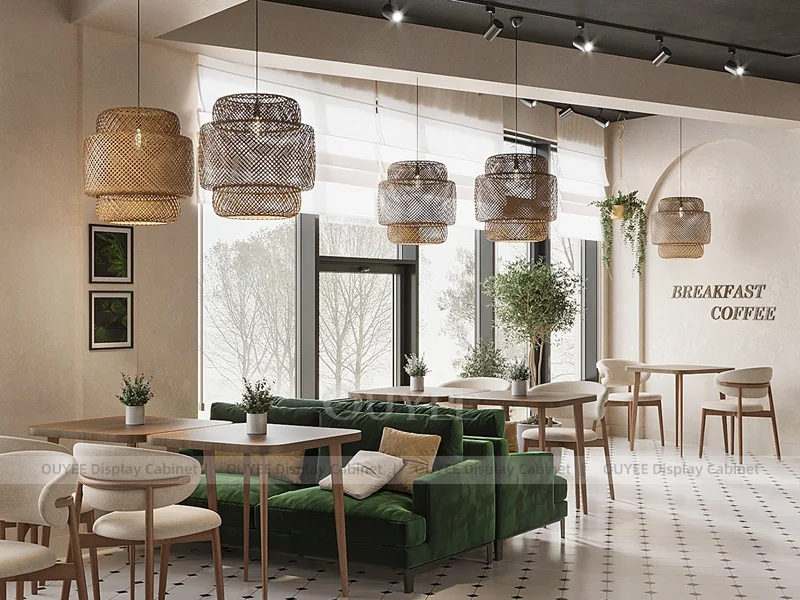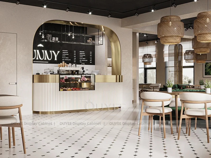 OUYEE supports coffee counter design, shop drawings, material selection, manufacturing, packing, and export delivery. We can customize the fixture according to your brand color, logo, store size, electrical planning, and installation requirements.