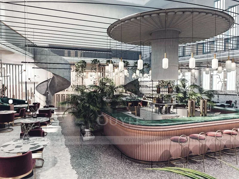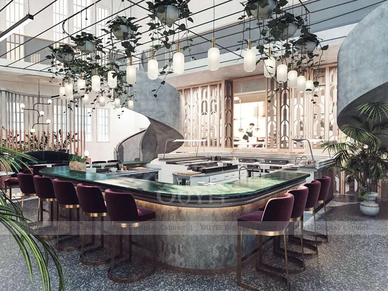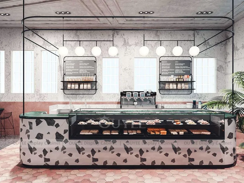 OUYEE supports coffee counter design, shop drawings, material selection, manufacturing, packing, and export delivery. We can customize the fixture according to your brand color, logo, store size, electrical planning, and installation requirements.